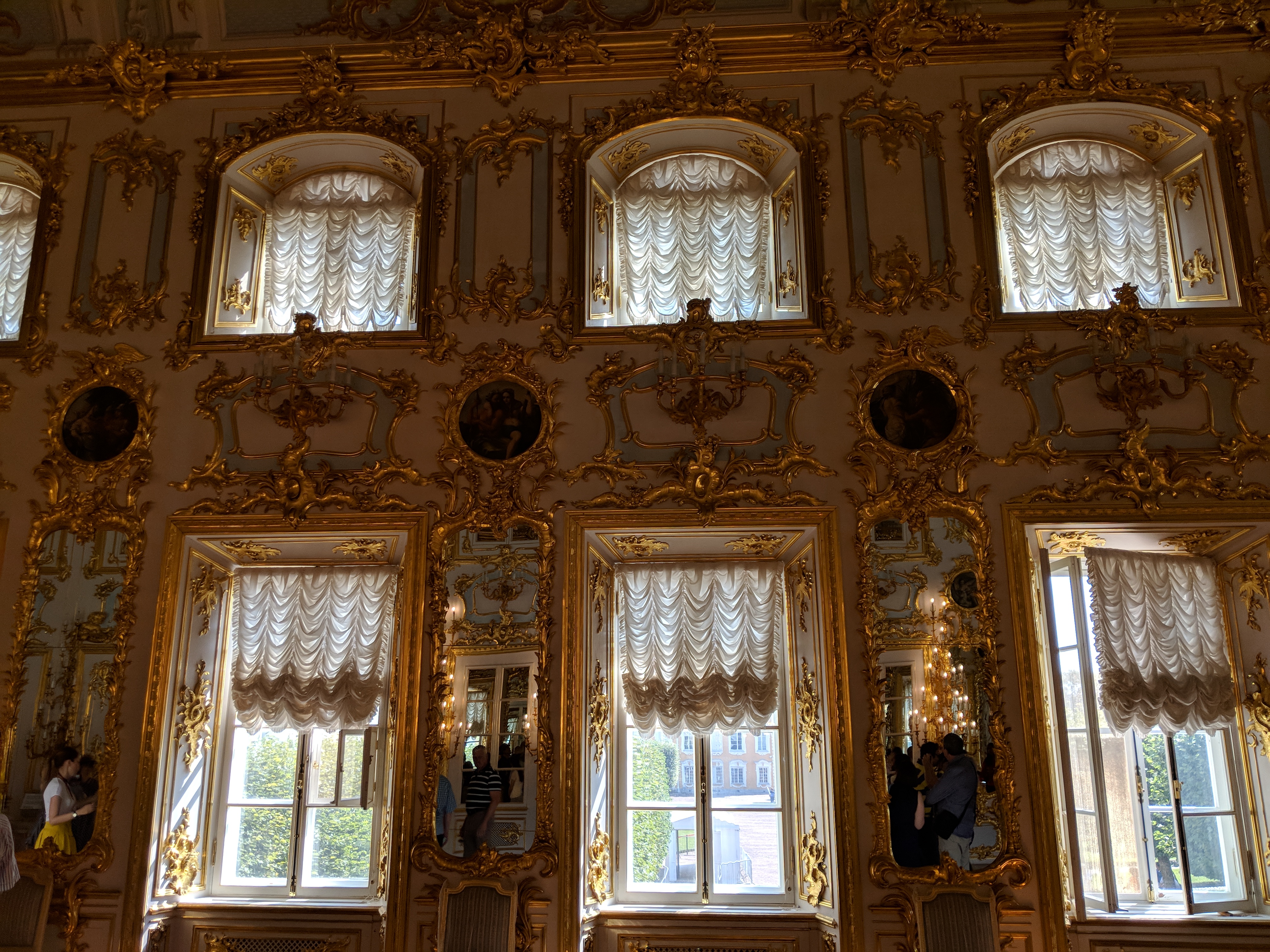 Нека поговорим за двореца като оставим настрана многобройните му посетители. Той просто поразява със златото си. Навсякъде е, всичко е жълто, особено вътре в него. Фонтани, столове, гравирани врати в злато … тия са нямали какво да го правят това злато та са го изсипали там направо. Разправяше се, че през Втората световна война, когато немците обсаждат града, всичкото злато от двореца е изнесено и после върнато, за да не бъде унищожено.