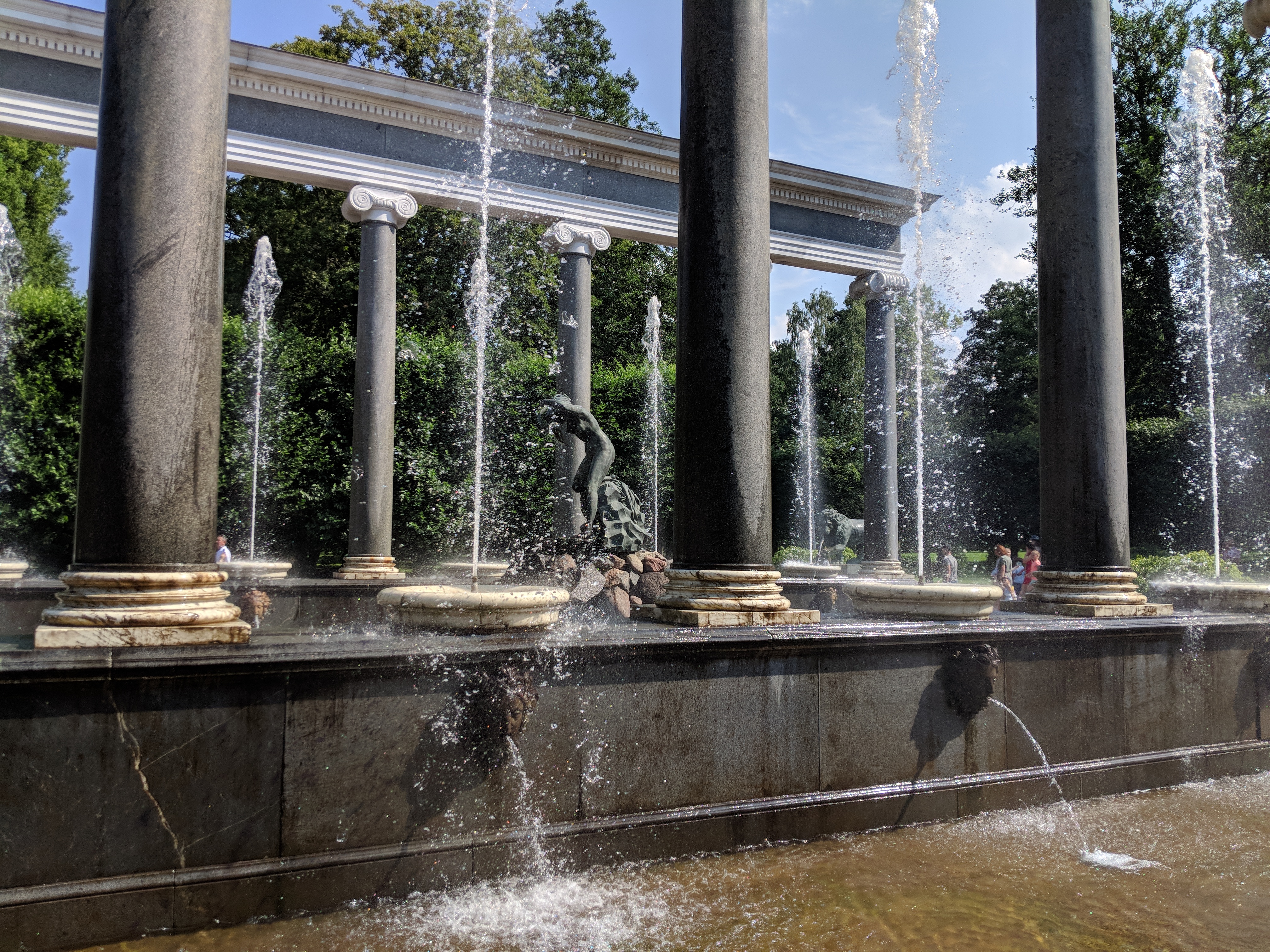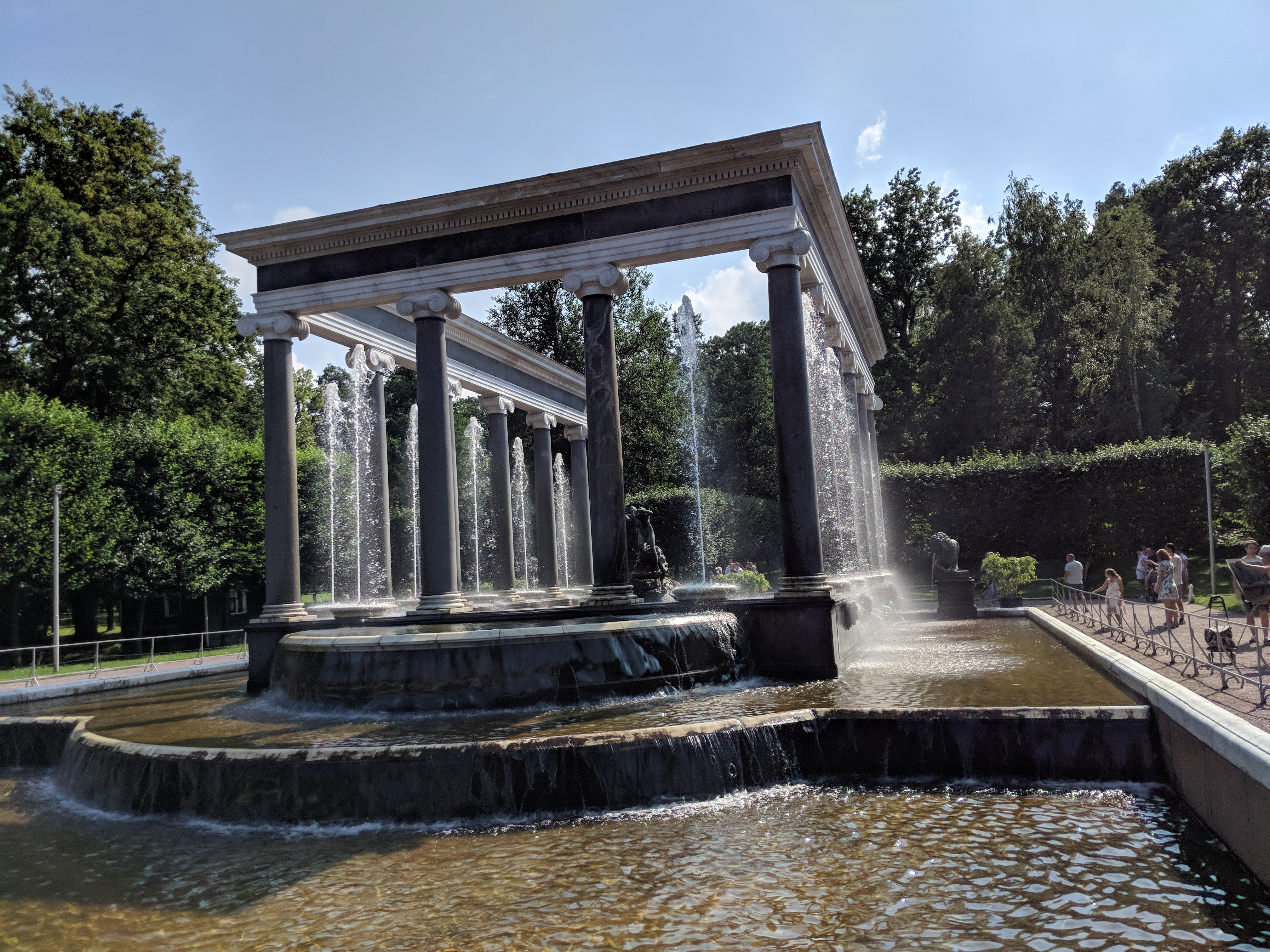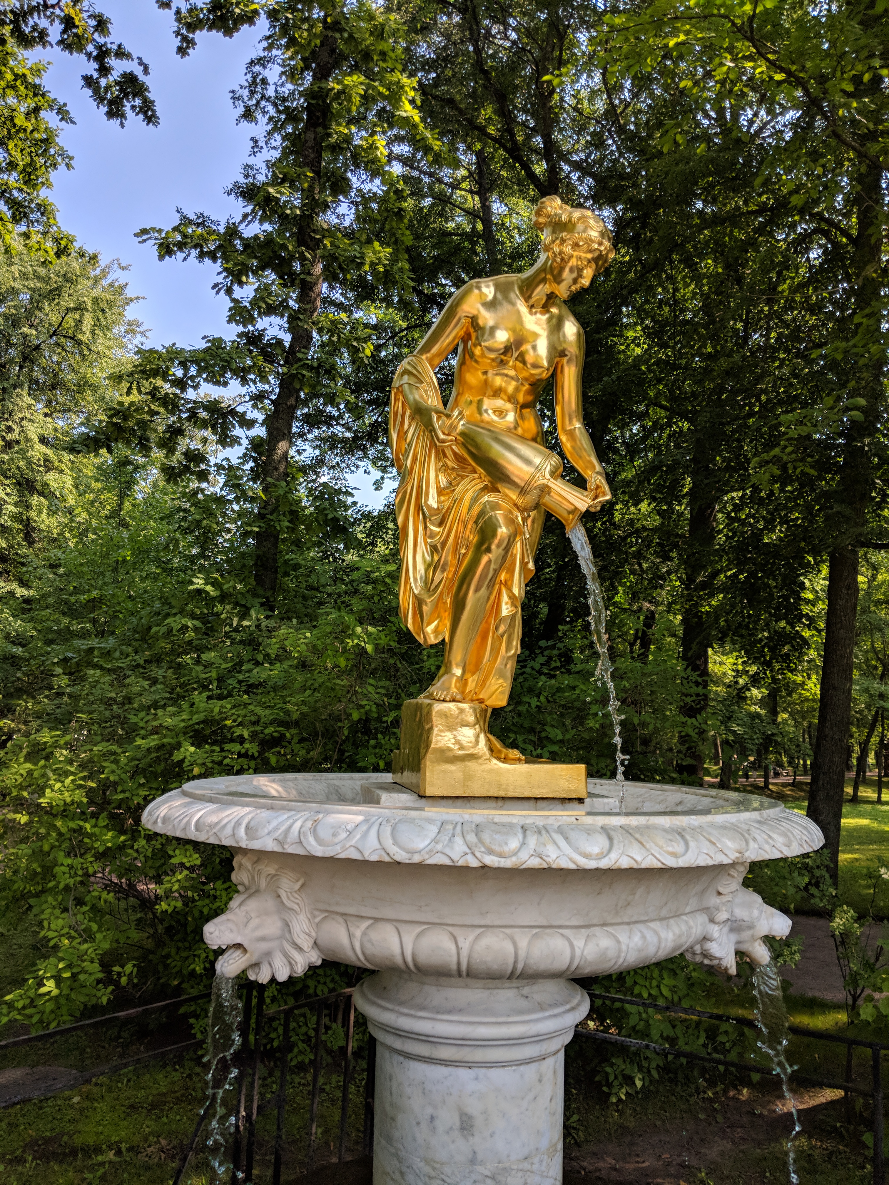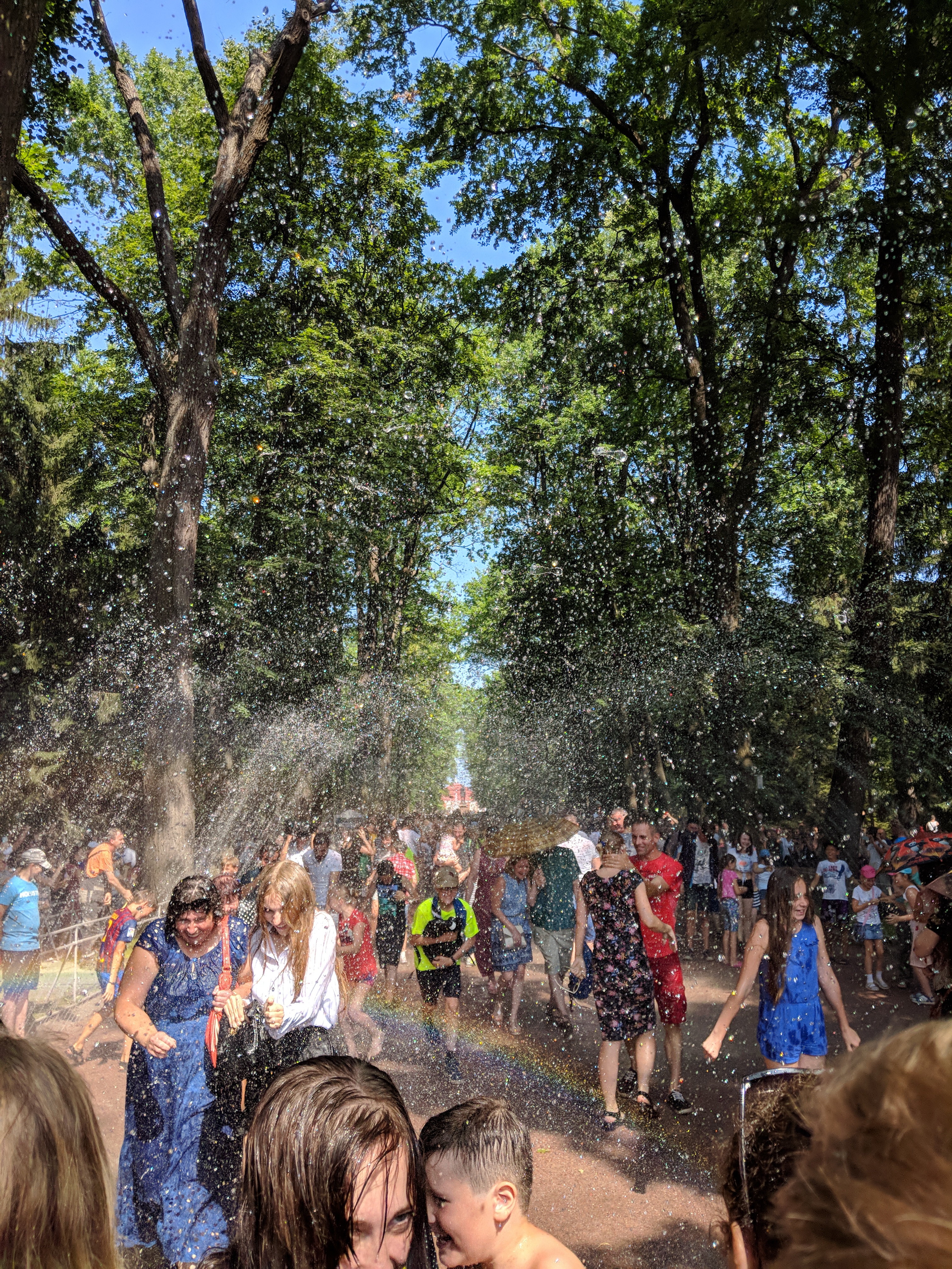 Паркът е огромен и е наслада за окото, има множество малки будки за закупуване на „мороженое“ (сладолед) и вода, но не е претъпкано. И въпреки това така и не успях да простя на Петър Велики, че не се е сетил да включи една проклета чешма в плановете на архитектите. Тонове злато по фонтаните, а няма къде една проклета вода да пиеш без пари.