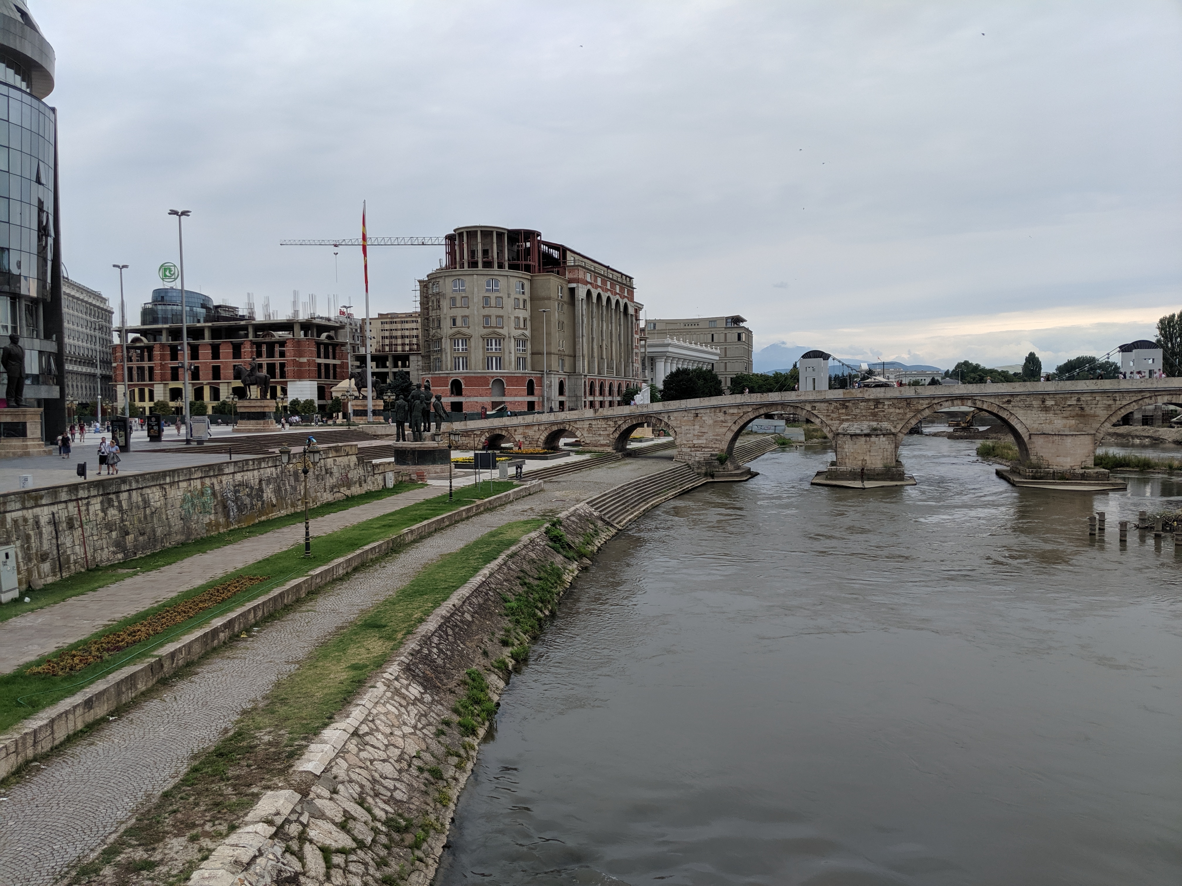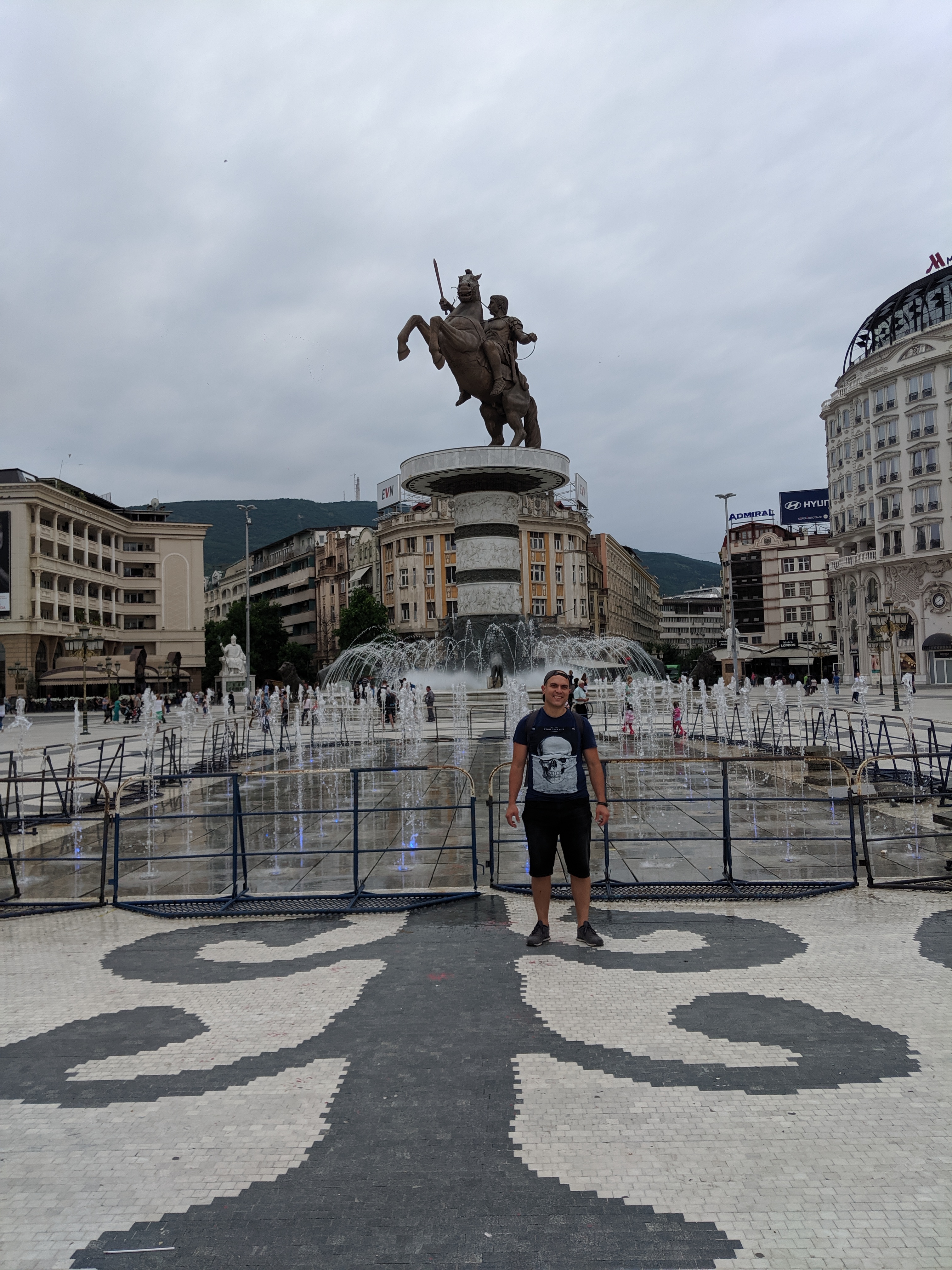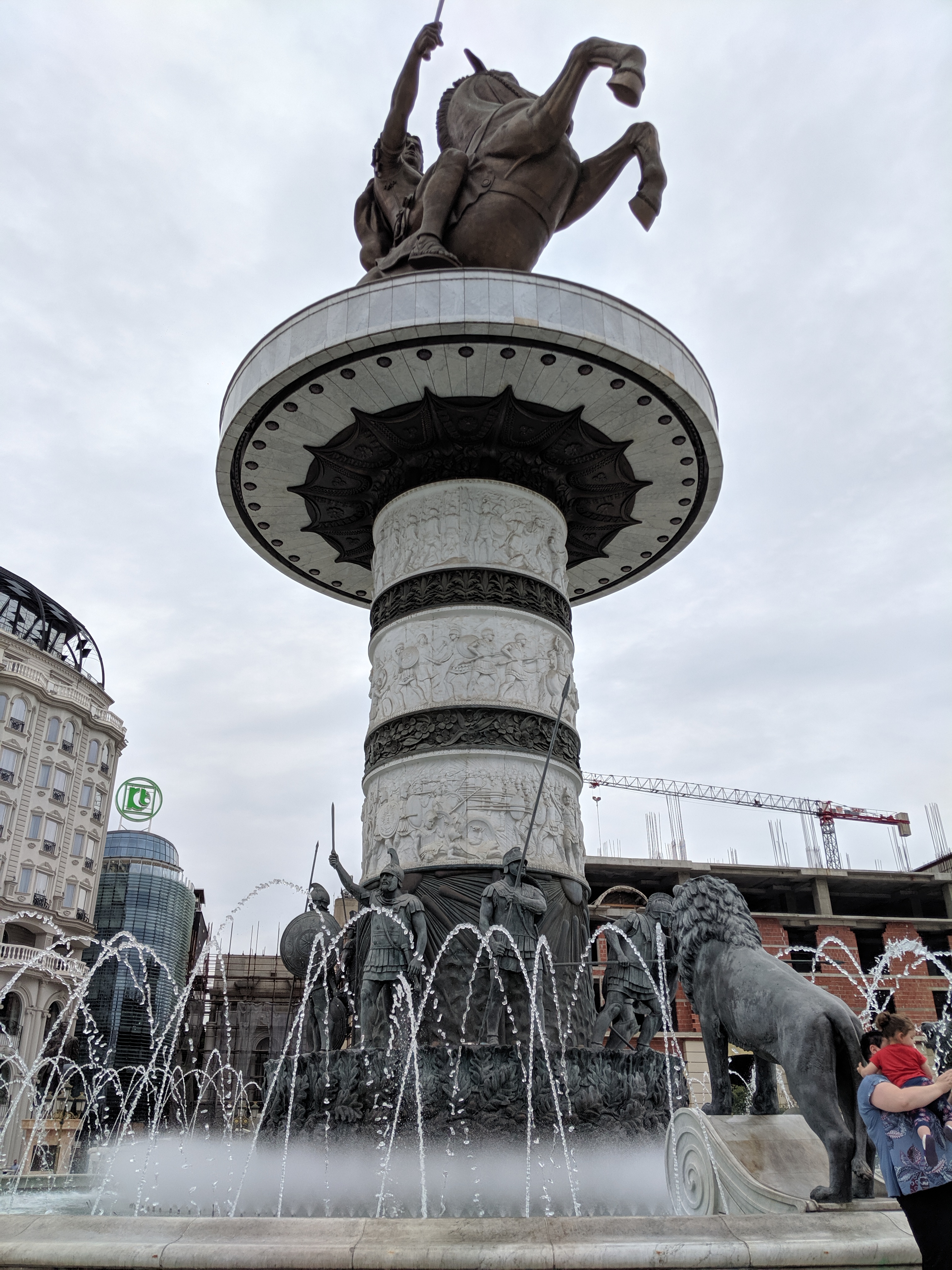 Стигнахме Скопие и направо отидохме на центъра. Вече ме гонеше глад за обяд, а и исках да се разходим из града. Винаги ми е харесвал като град. Има някакъв чар, някакъв дух макар и изкуствено създаден с множеството статуи. Сградите имат хубава архитектура. А в София всичко е лудница. Но темата не е за София. Спрях на паркинг на центъра и се разходихме наоколо. Шадраваните на центъра бяха много красиви, макар и да беше леко странно как от устата на лъвовете излиза вода, но както и да е.