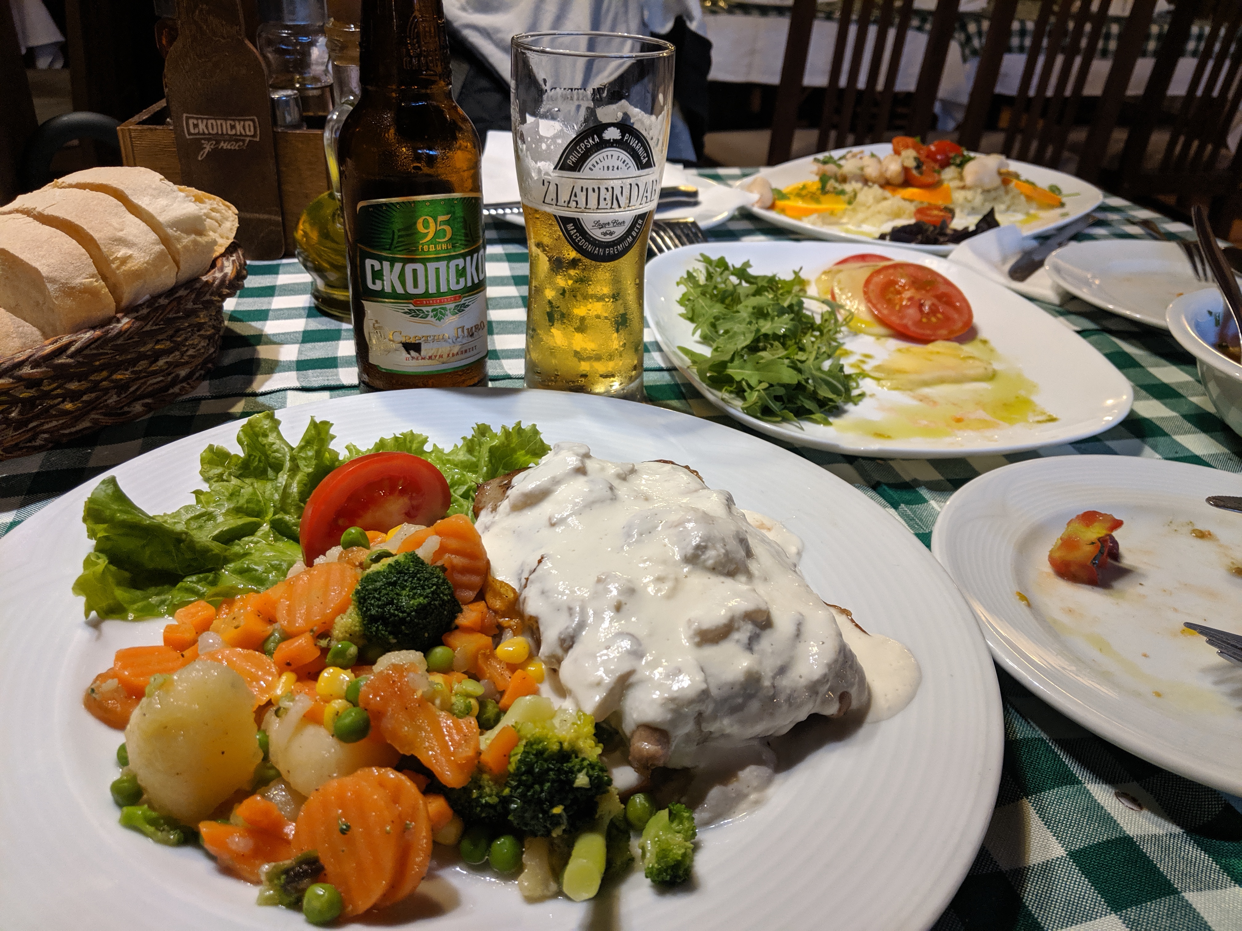 Ресторант Белведере е много приятно място за хапване особено ако времето навън е хубаво. Не е от най-евтините обаче, но останахме сравнително доволни. Баницата бюрек я оставихме за следващия ден тъй като от самото ни тръгване към Македония не спирах да говоря за нея на Цвети. Не ни отне много да се пльоснем като трупове в леглото. Часовата разлика си каза думата, а и пътят за деня не беше никак малко. Около 400 км. А на следващия ден ни чакаше Тирана.