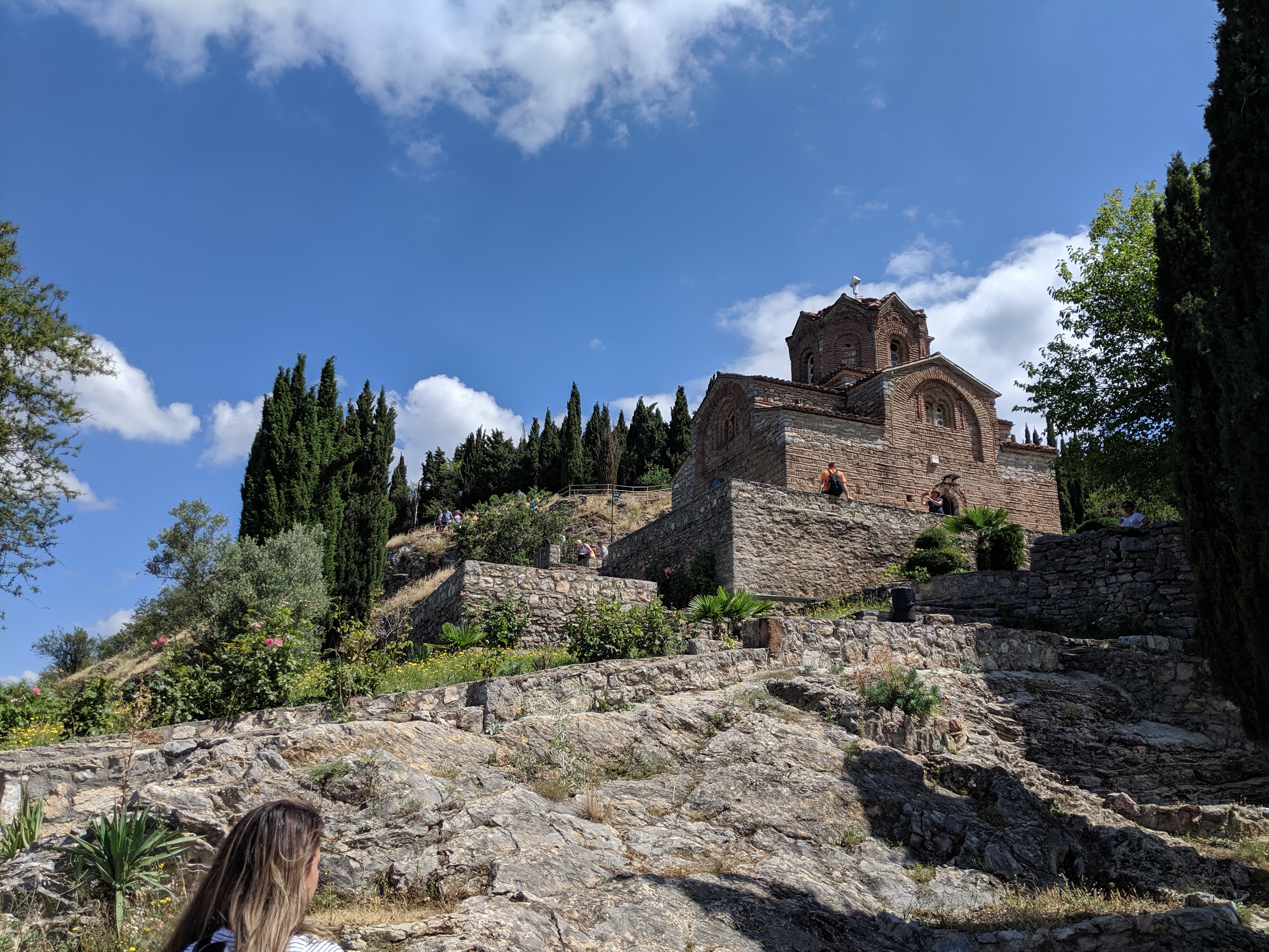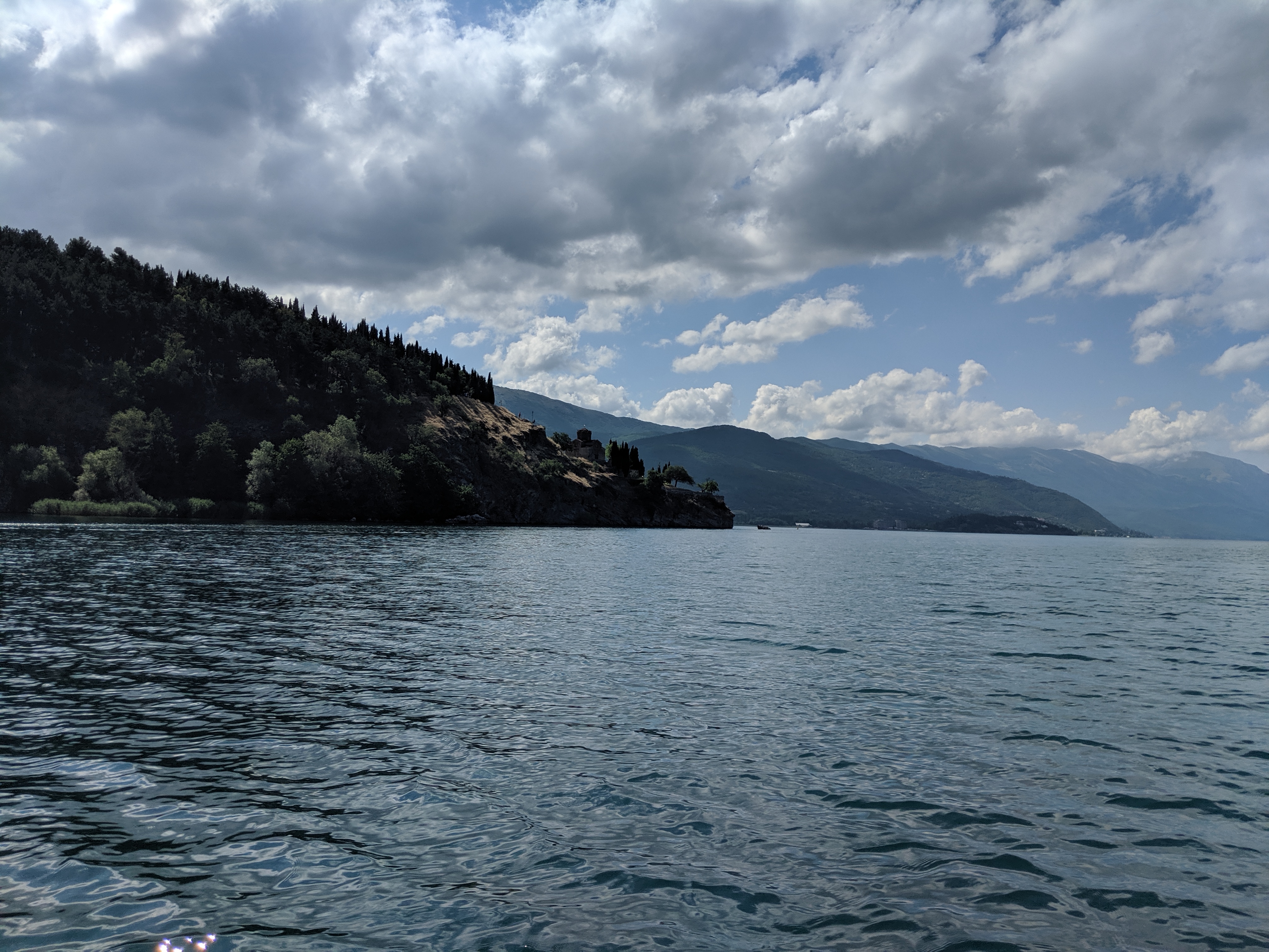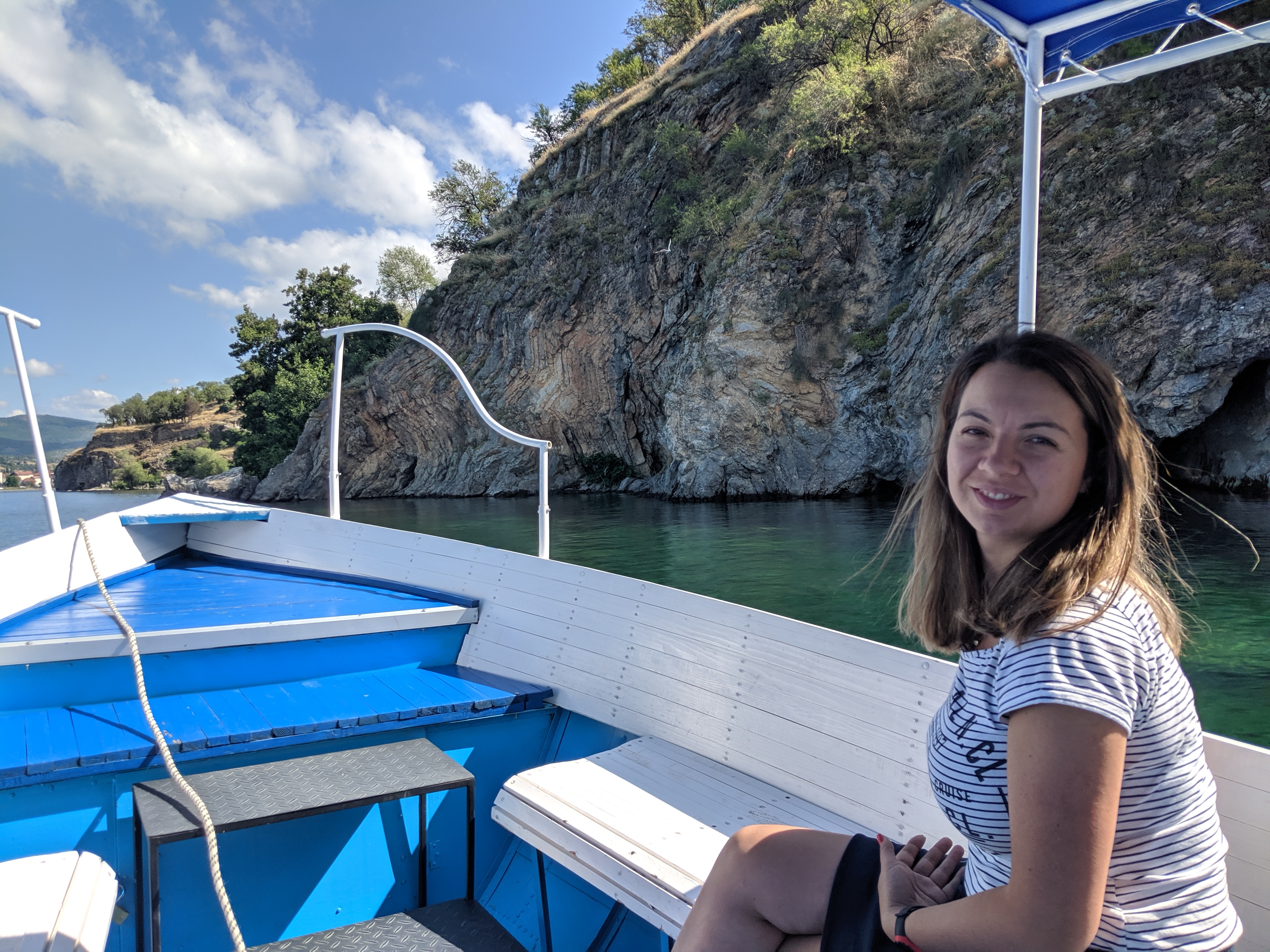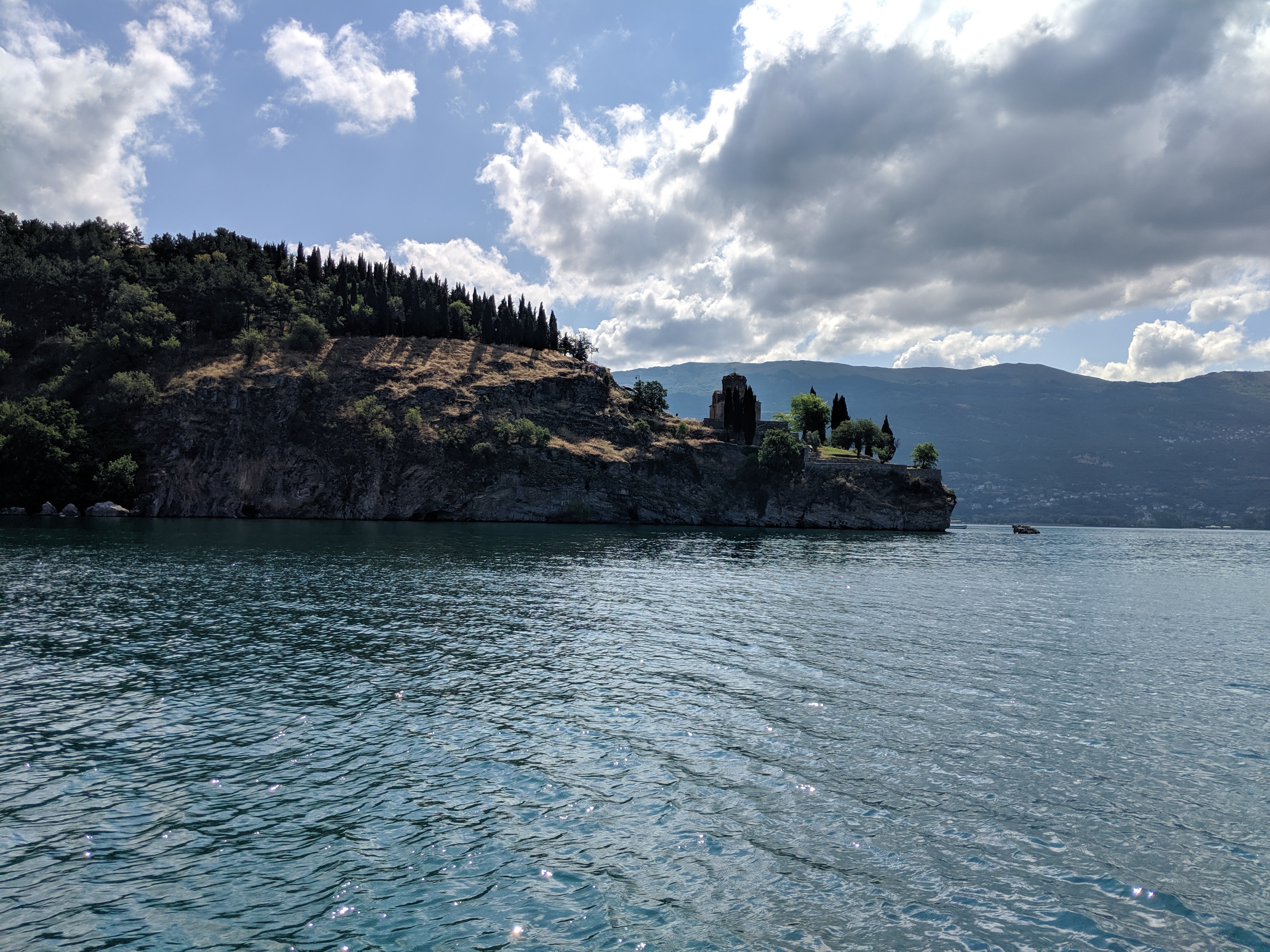 През цялото време обаче гледахме голямата круизна лодка, на която се качваха хората, за да се разходят около езерето. Разходката струваше 10 евро на човек и траеше 5 часа като се стигаше до манастира Свети Наум близо до границата с Албания. По принцип планът ми беше да се разходим с Цвети до там, но маршрутът леко се удължаваше, а вече достатъчно я бях уморил с пътуването, затова решихме да го оставим. Но я усещах, че ѝ се разхожда с лодка и тъкмо тогава късметът ни се усмихна. Оказа се, че има лодки от тези рибарските, по-малките, с таван разбира се, които предлагат разходки по крайбрежието в рамките на 30-40 минути. Отиват до църквата Свети Йоан Канео, която е символът на града и после обратно до центъра. 10 евро за двамата ни излезе всичко. Беше много приятно, а и изглеждаше много красиво. Водата на Охридското езеро е много чиста, а гледката към църквата е невероятна. Всъщност за църквата се разказва, че Свети Йоан се появил на една жена, чиито син бил глухоням и я накарал да събере от пяната на водата, където тя се разбива в скалите под църквата. И така детето било изцелено, а там била построена църквата.