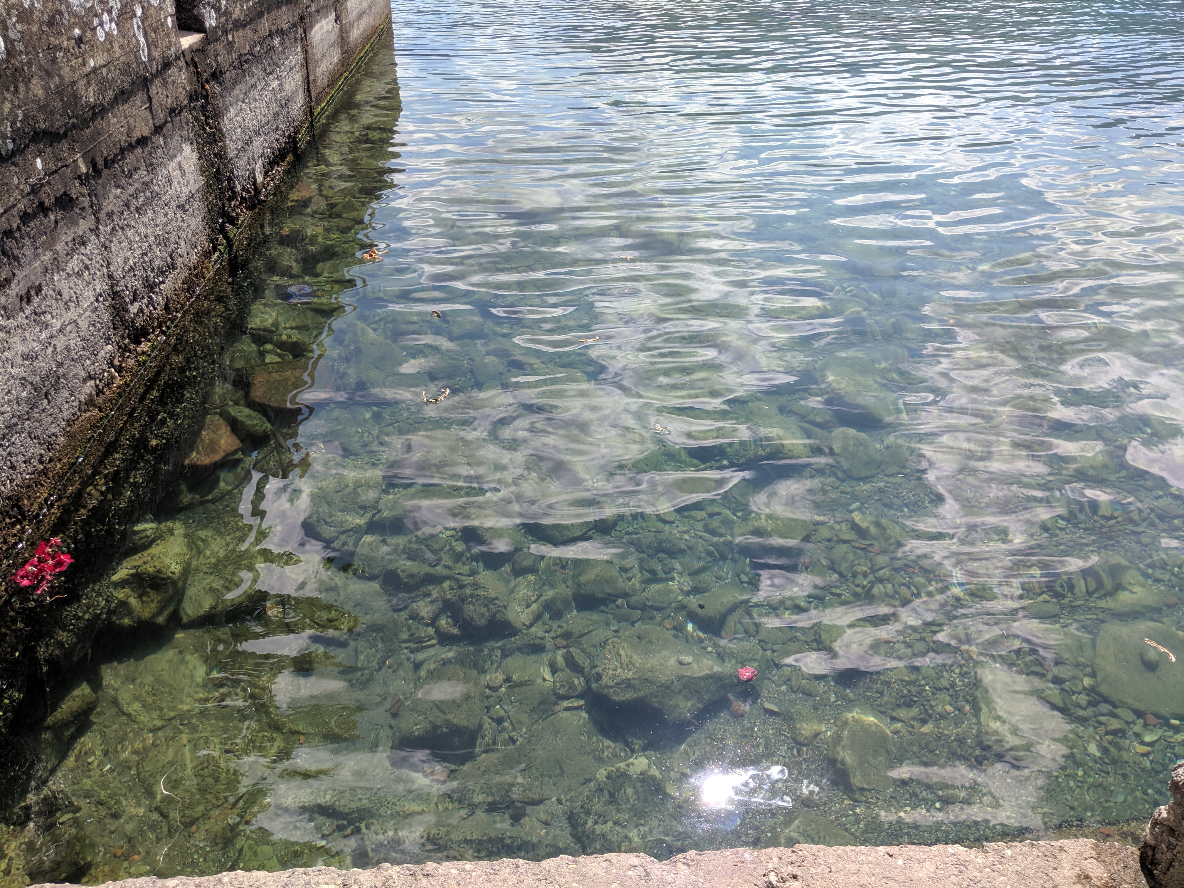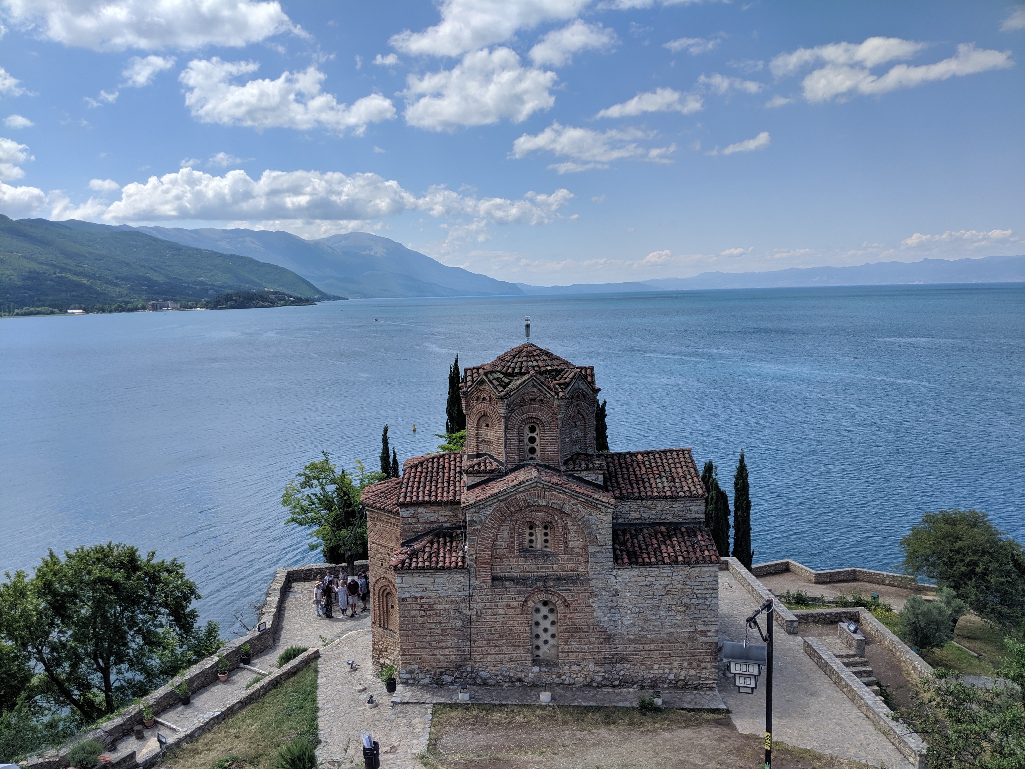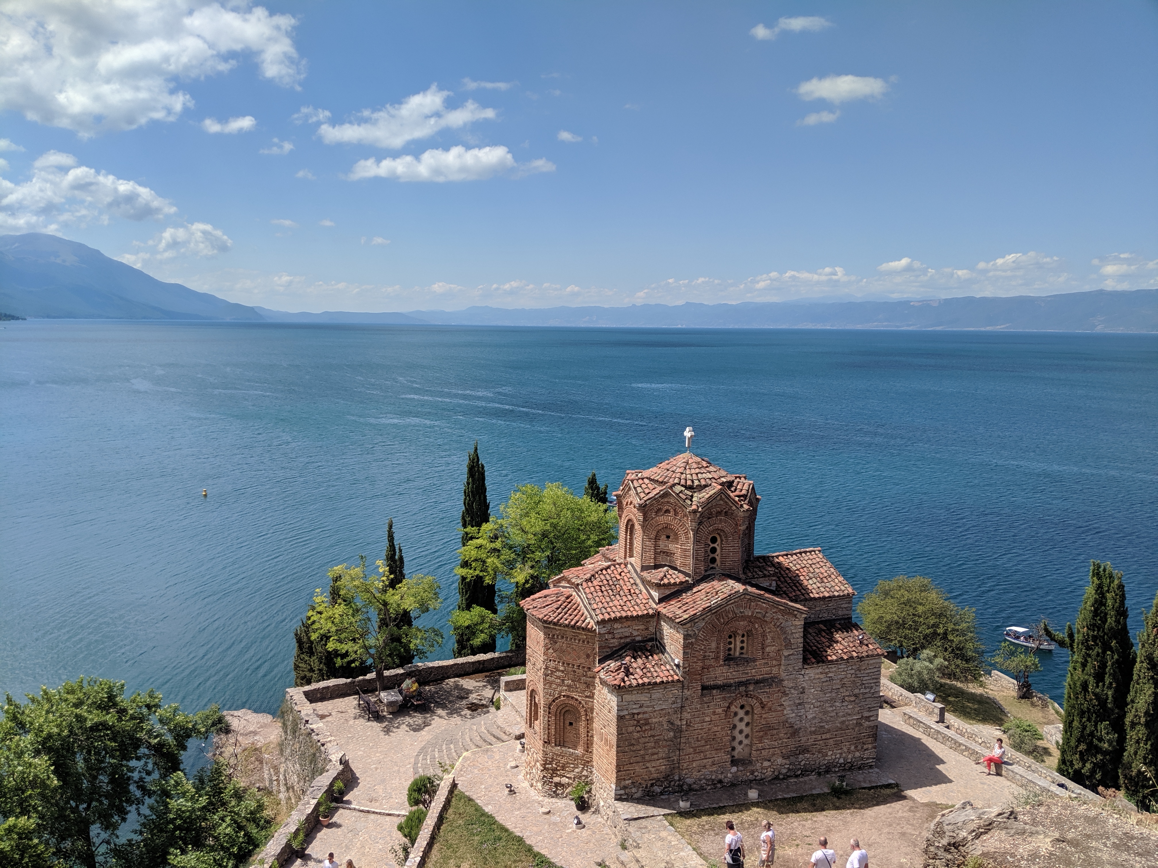 След приятната разходка с лодка вече и двамата бяхме с усмивки. Отидохме да пием кафе в близкото кафене, хапнахме по една баница и взехме едно магнитче. Решихме да се разходим и пеш до църквата Свети Йоан Канео, тъй като разходката не беше повече от 15 минути, а се минаваше през едни интересни плажове на крайбрежието на езерото. Беше пълно с чуждестранни туристи като лодкарят ни разправяше, че идвали от Франция, Англия, Германия и къде ли не. В интерес на истината се чуваше доста английска, немска и полска реч.