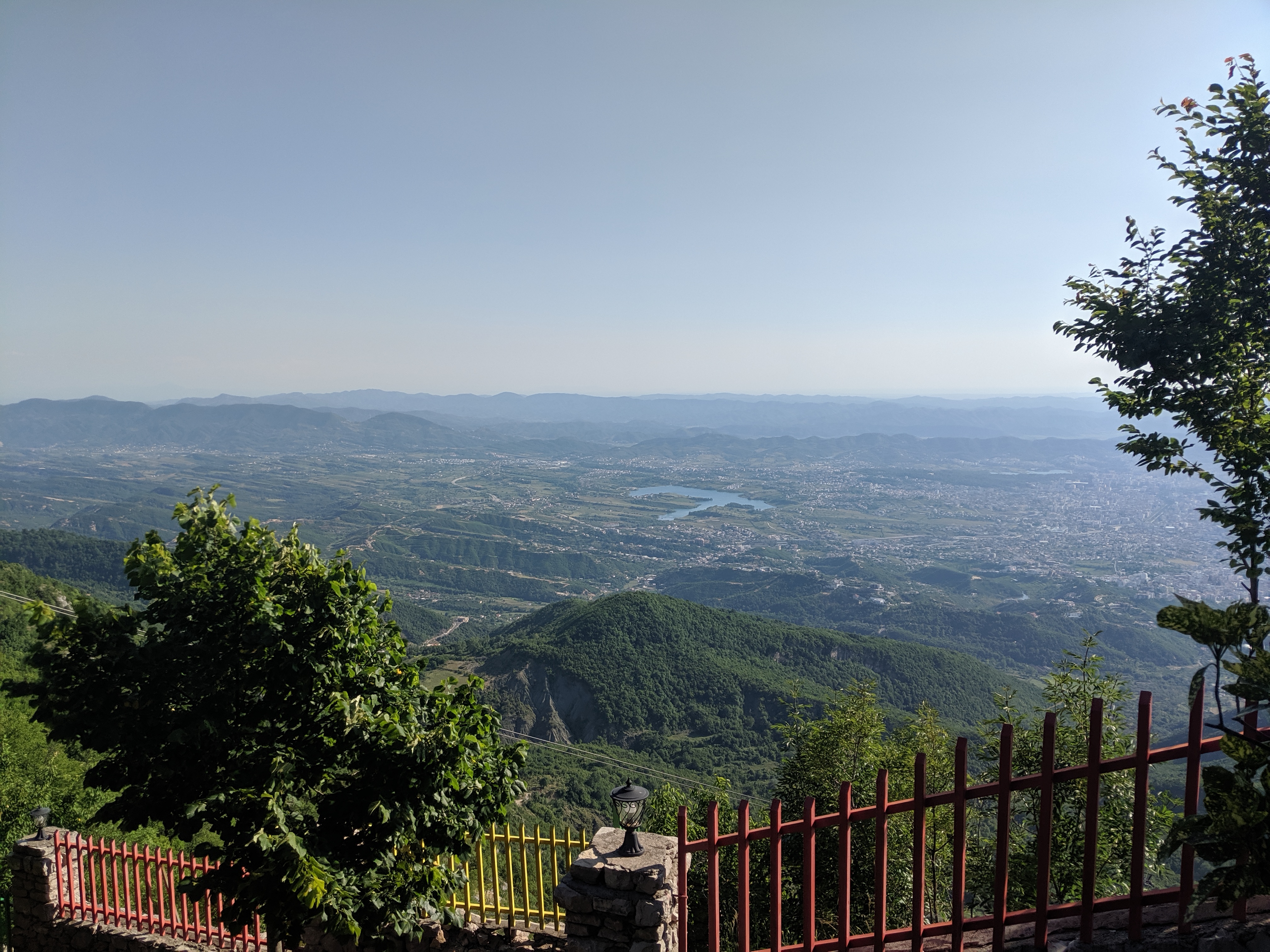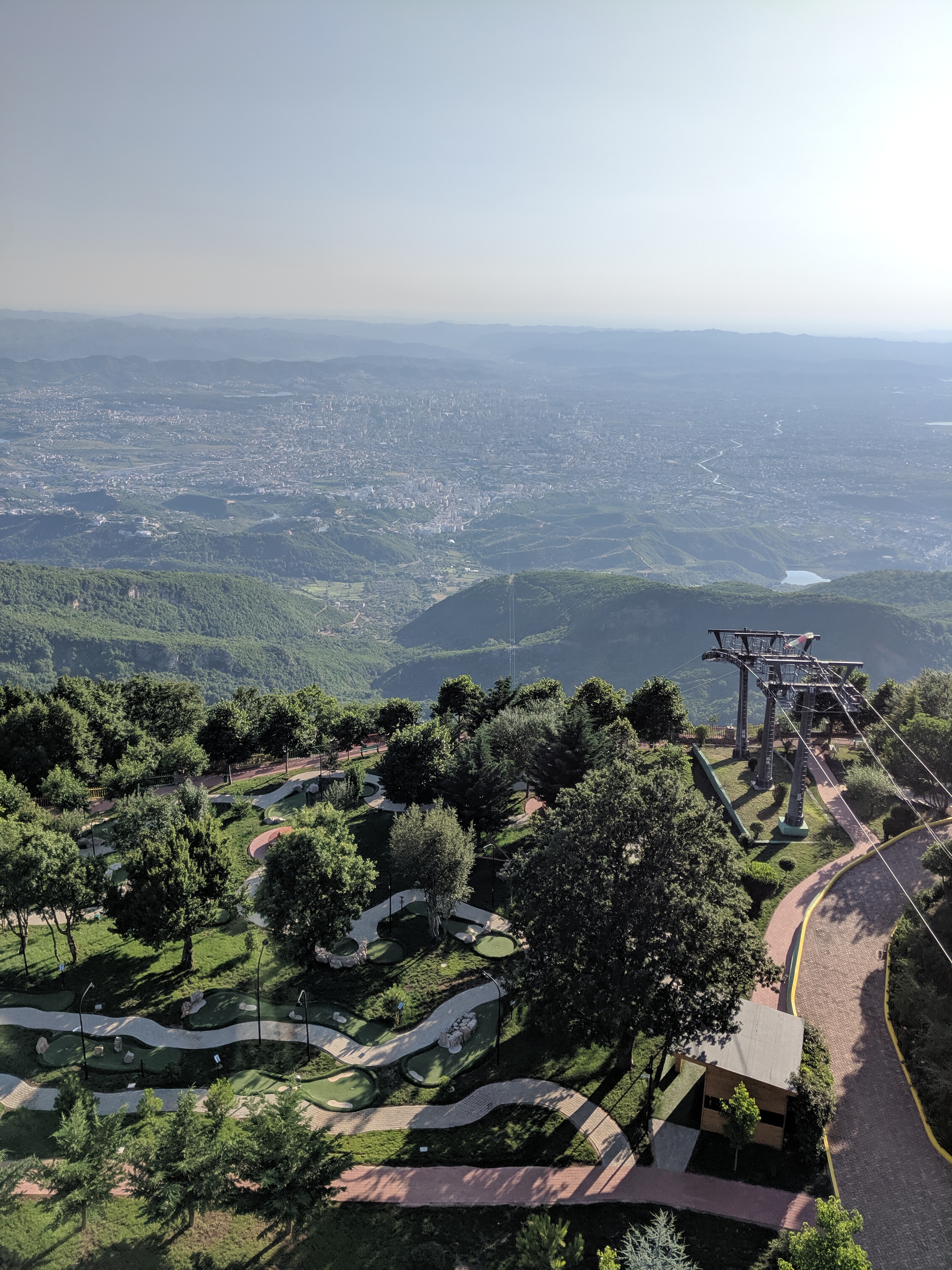 Мизерия, мамма мия. Както и да е, не се мотахме много, разтоварихме багажа и попитахме на рецепция кой автобус да хванем до върха Дайти. Всъщност от него се вижда красива панорама към Тирана и към Йонийско море, което се пада в далечината. До него се стига с лифт като горе има хотел, ресторант и заведение. Има също и детска площадка, а и е доста по-прохладно на височина около 1100 метра. Оказа се, че в Тирана автобусите нямат номера, а са на цветове. Обяснимо е, все пак не е голяма столица. Хванахме син автобус с надпис Porcelan и стигнахме до горе като мина през центъра на града. Билетът е 60 ст. Станахме свидетели на лудницата, в която живеят тези хора. Пазари, коли, мизерия и много хора. Правеше впечатление, че физиономиите им не са турски, а наподобяват доста на европейските. Всички бяха добре облечени като с моите дрехи на моменти се чувствах все едно съм някой от село. Наистина бях впечатлен от това как изглеждат, но не и от това къде живеят.