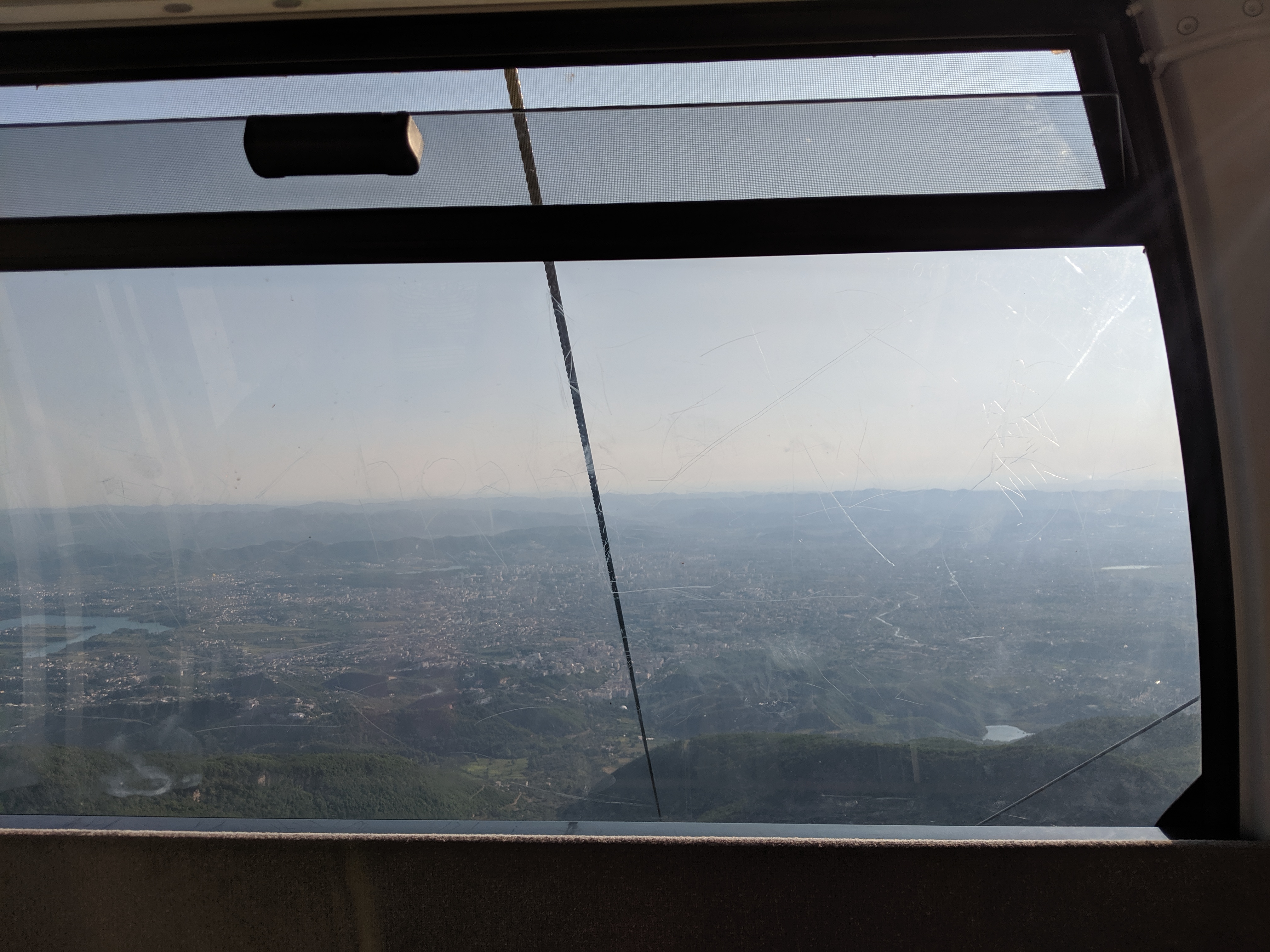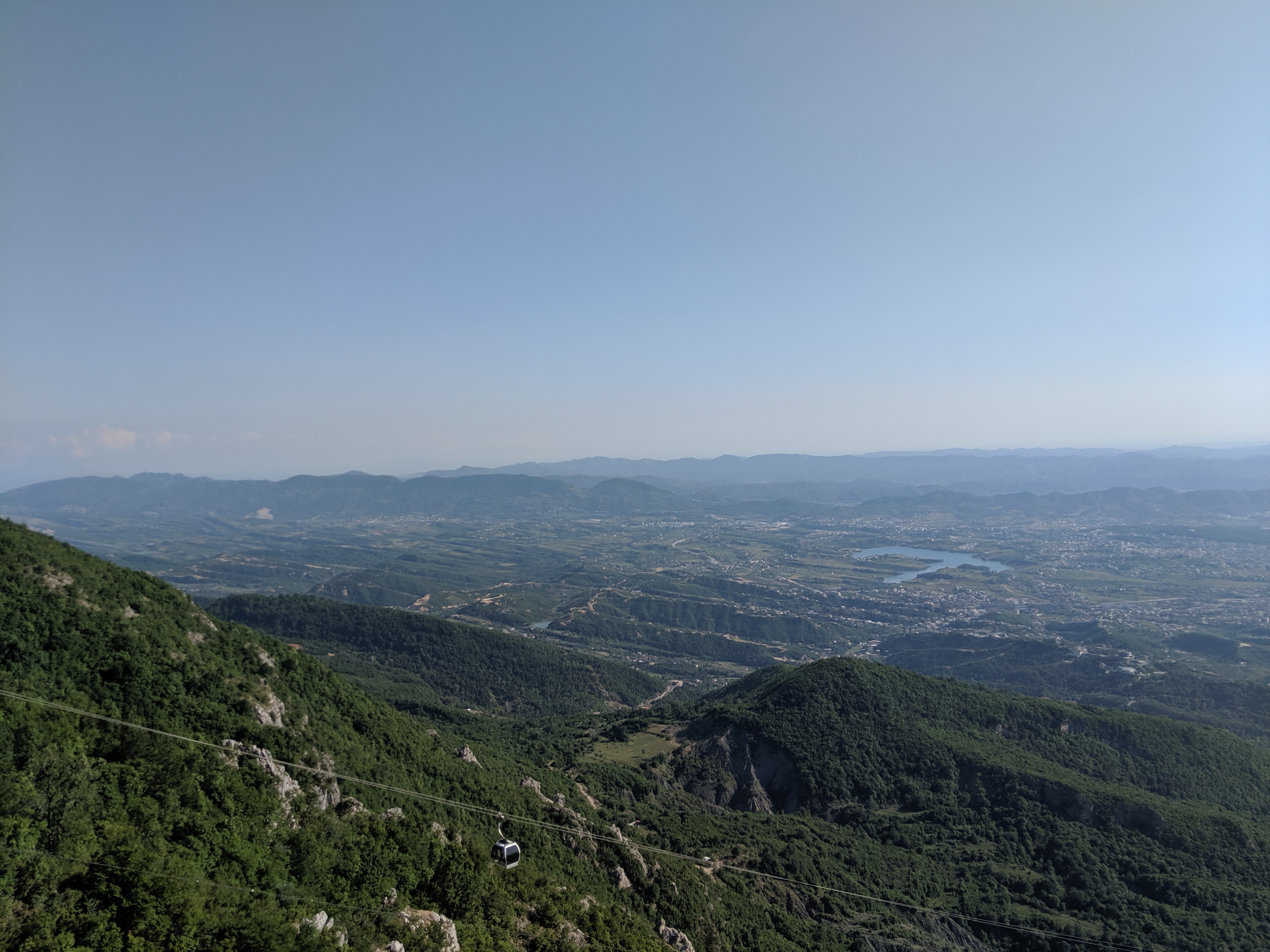 Стигнахме кабинковия лифт, който за двама човека излезе 32 лв отиване и връщане общо. Горе беше адски прохладно и приятно на фона на жегата долу в града. Имаше хубава гледка и ресторант с балкон, който гледаше към града, но ни беше твърде рано за хапване.