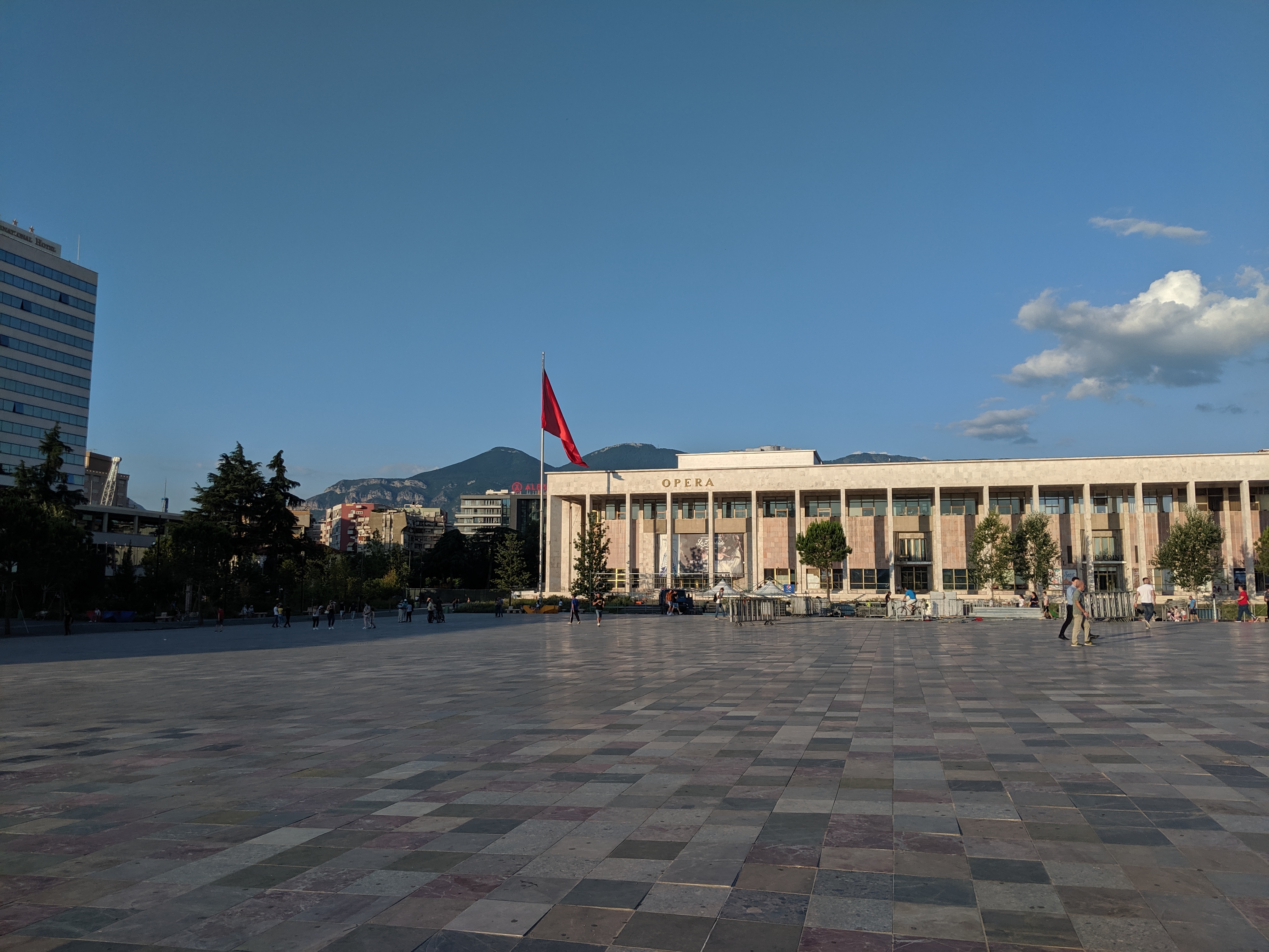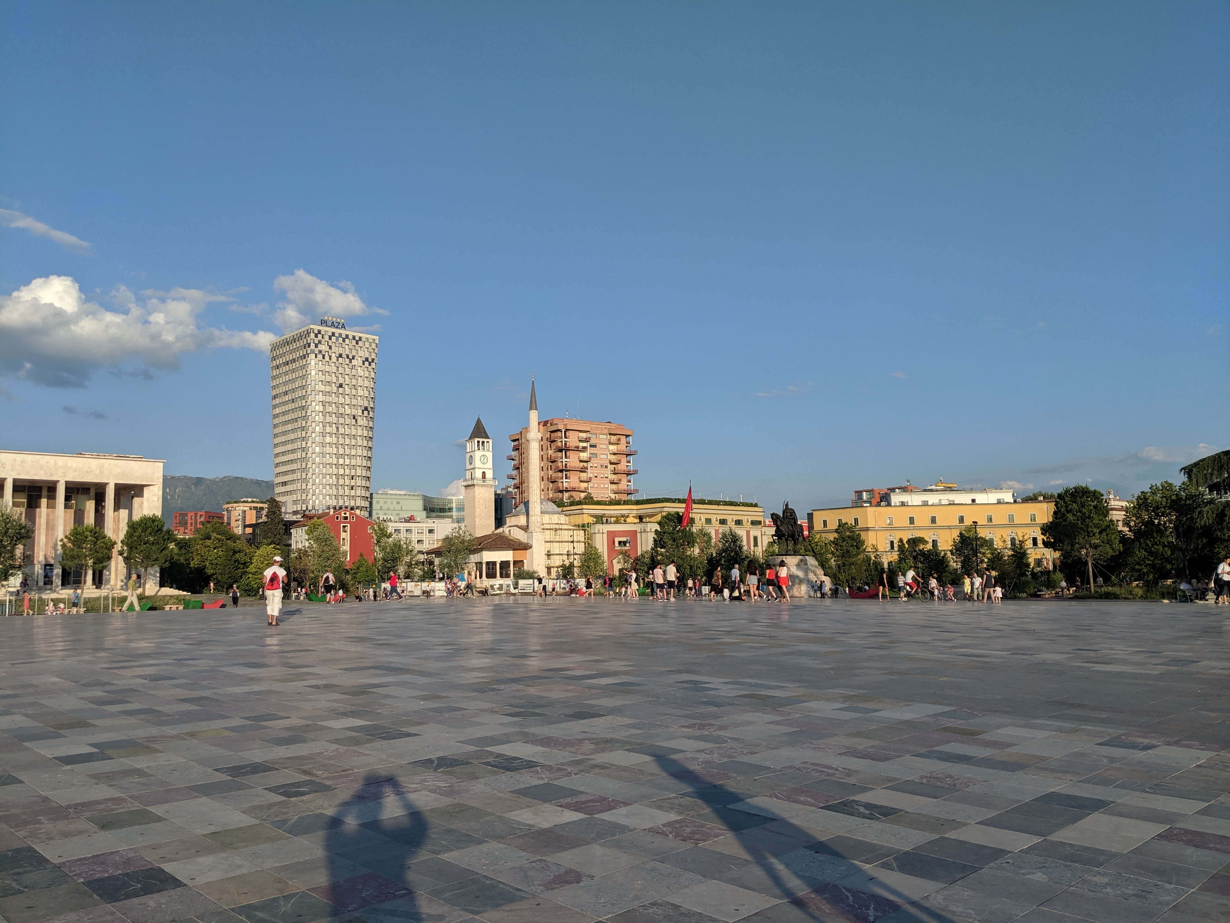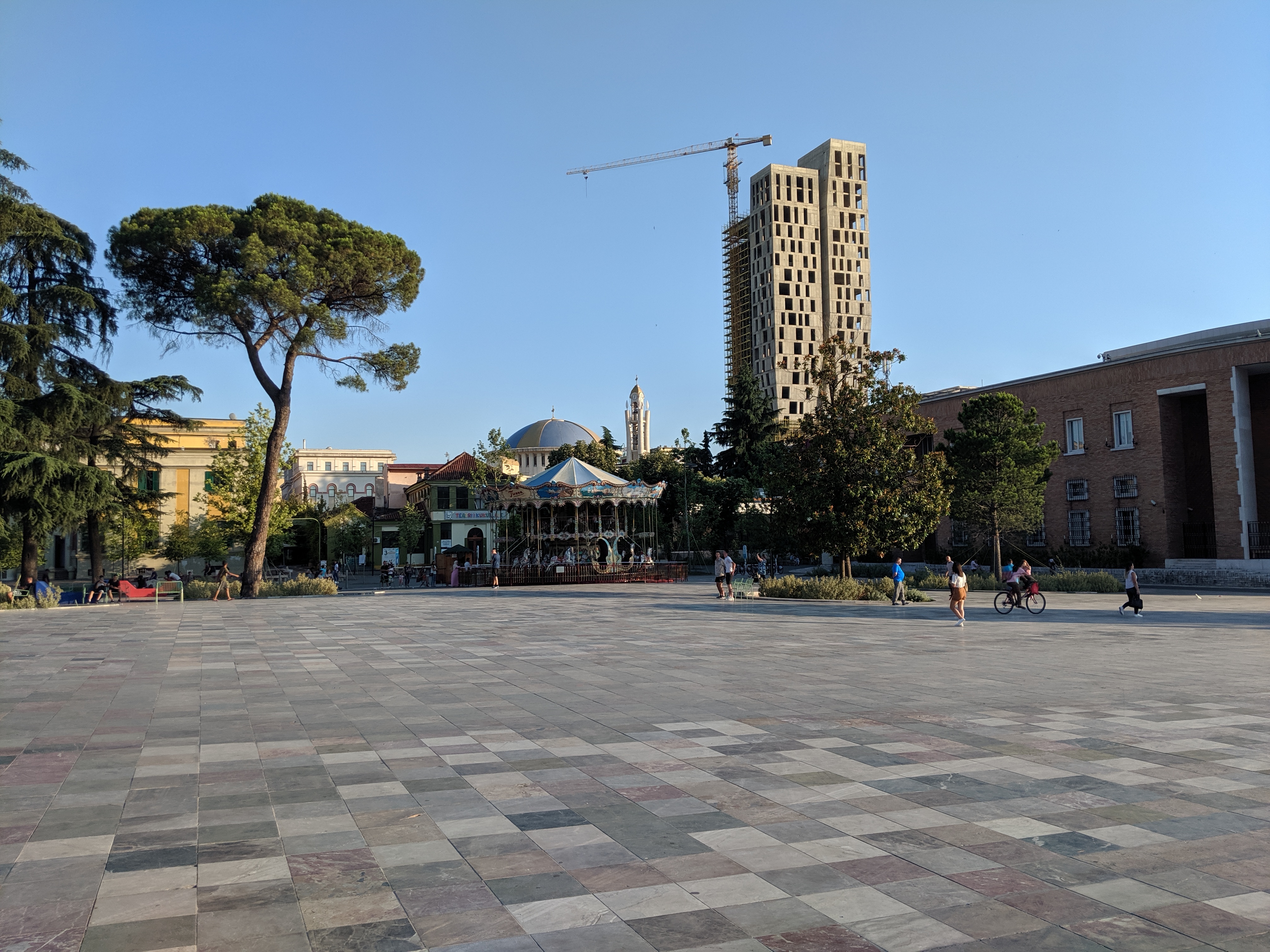 Насладихме се на гледката от панорамата над хотела и се върнахме с лифта. С Цвети искахме да се поразходим из центъра и да видим какво може да ни предложи Тирана.