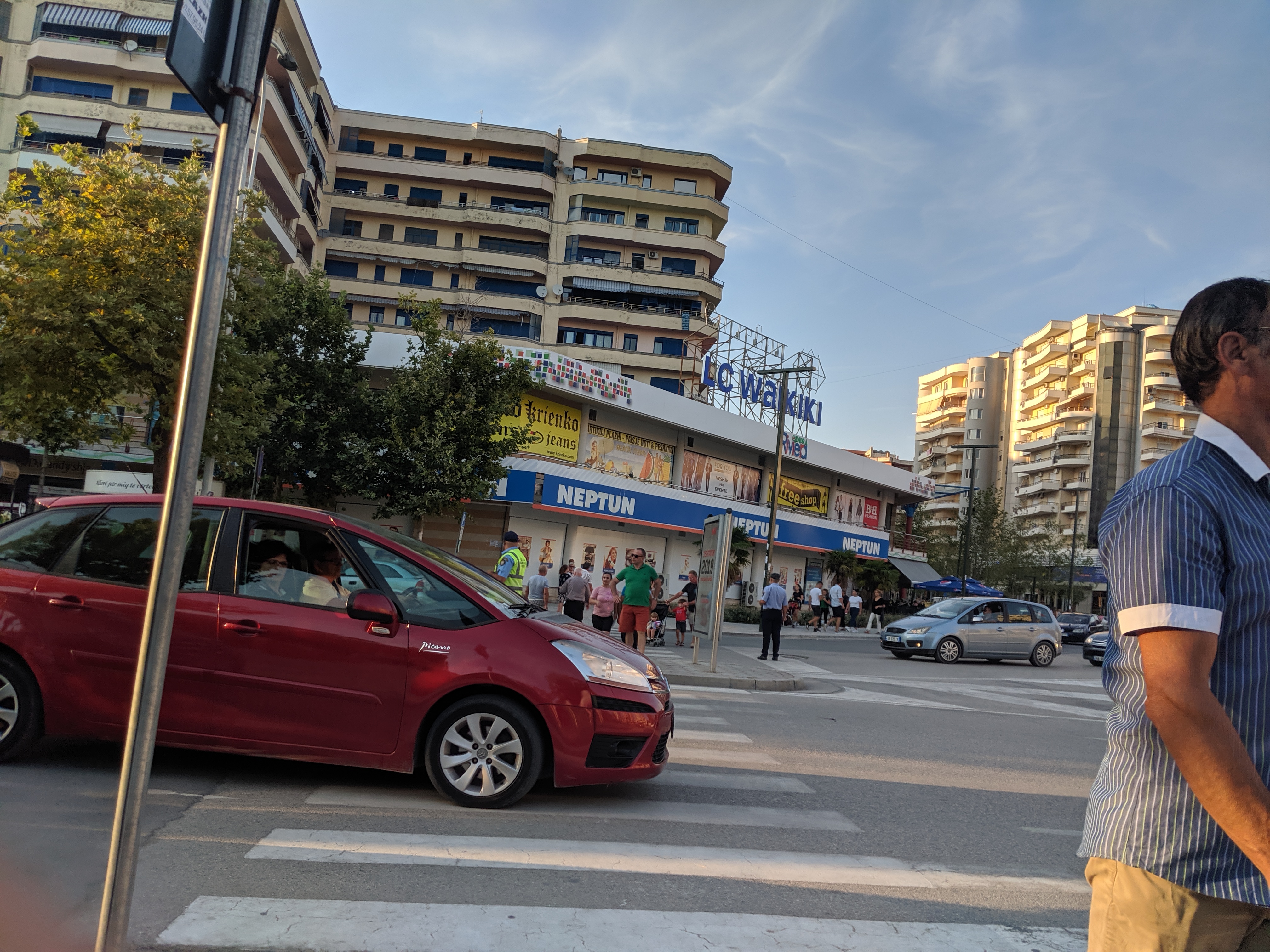 Забравих да спомена за пресичането на пътя в Албания. Такова нещо като пешеходни пътеки въобще не важат. Във Вльора дори имаха полицаи, които спираха колите малко преди пешеходните пътеки, за да не блъснат пешеходците. Пълен цирк. От тогава стъпим ли на пешеходна пътека все ръчках Цвети да вървим по-бързо. Просто беше абсурдно как те чакаха да освободиш 50 см от пътя и веднага минаваха, няма значение, че можеш нещо да залитнеш или да се подхлъзнеш, има ли разстояние да мине колата – минава.