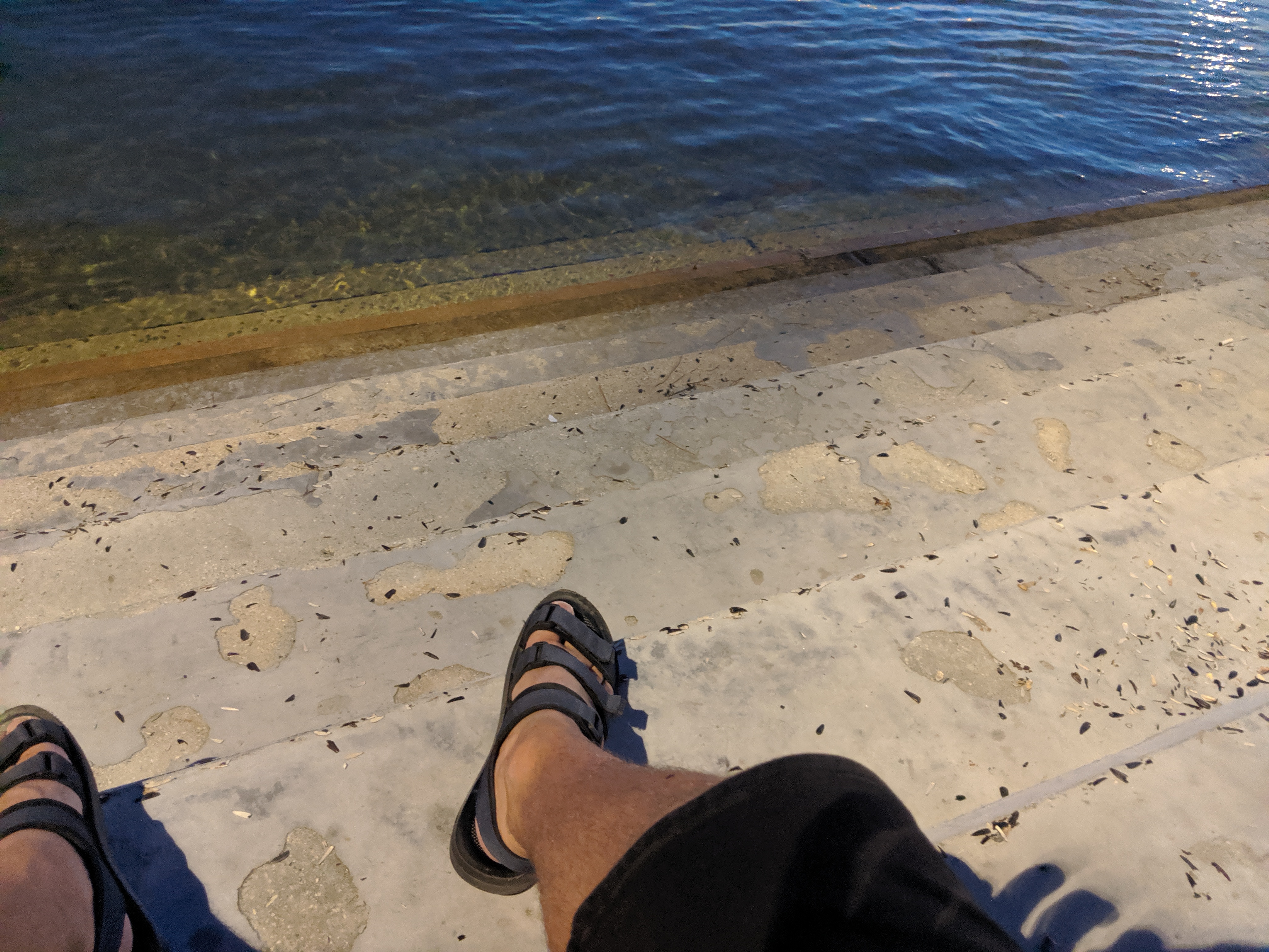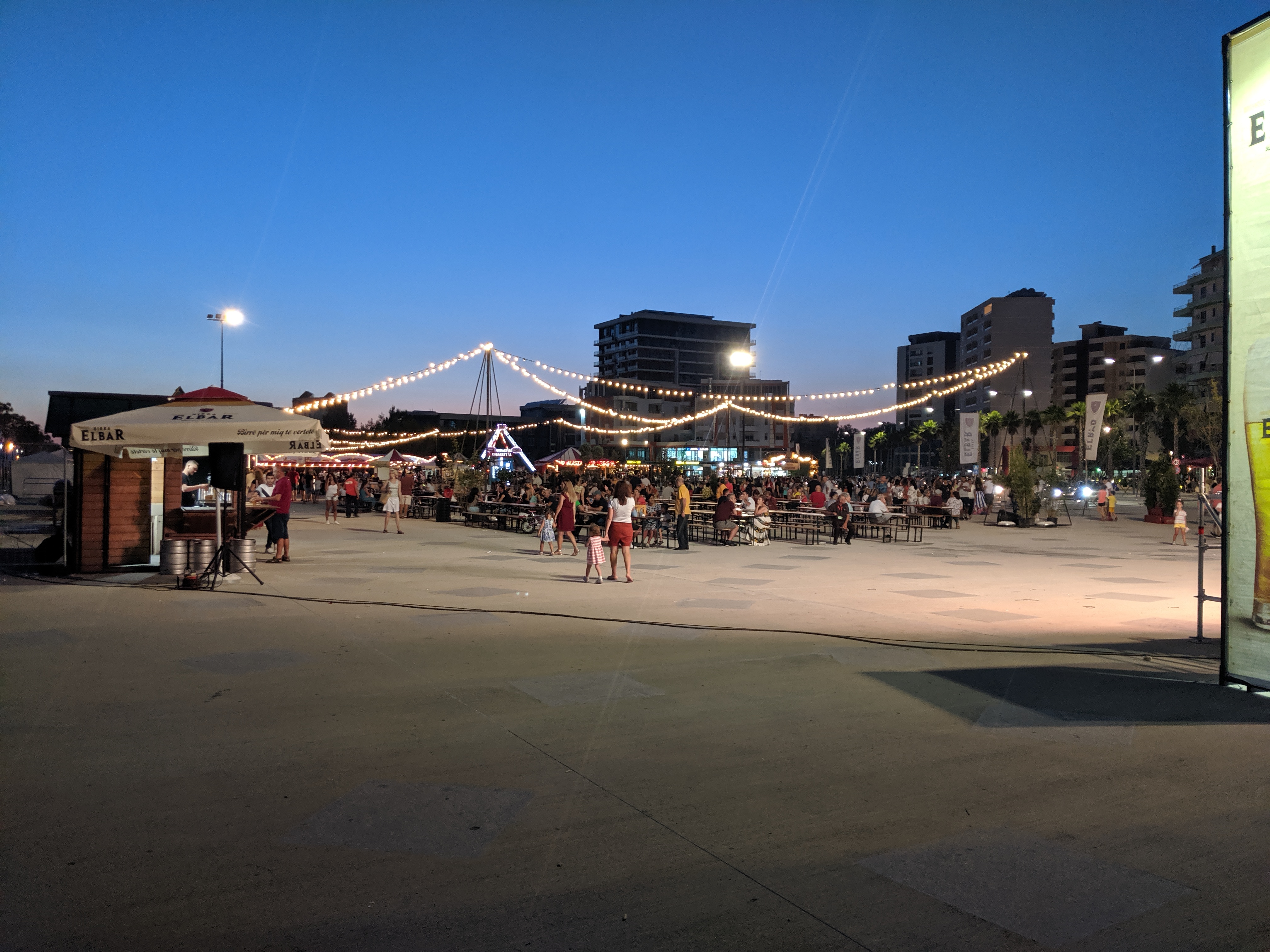 След това се разходихме по алеята, която вървеше около плажа и която беше претъпкана от народ. Аз толкова народ рядко съм виждал, дори и в Пловдив в събота вечер. Направо площадът беше пълен, имаше някакъв концерт на центъра, отделно пък хората бяха насядали навсякъде, заведенията пълни, музика бучи отвсякъде. А и градът изглеждаше романтично, сякаш зад вечерните светлини и приглушената музика криеше лицето от другата страна на монетата – онова бедното и изтерзаното.