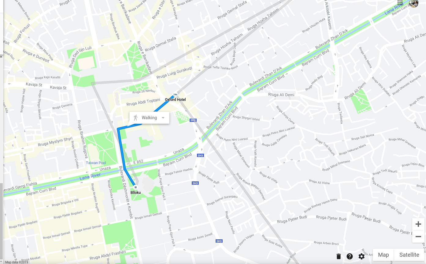 Имената на улиците са Deshmoret e Kombit и Murat Toptani. Ето как изглеждат на картата: