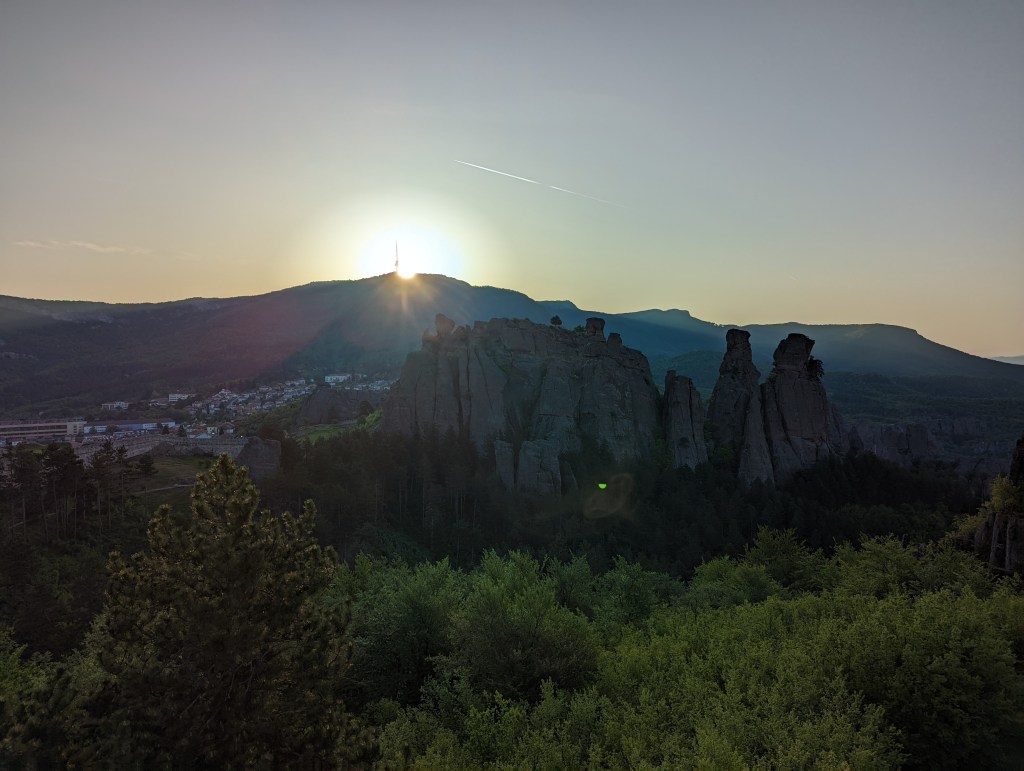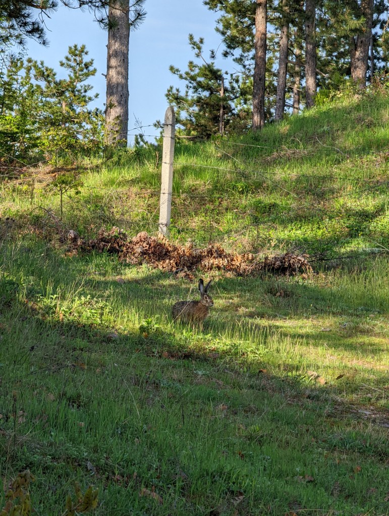 Удоволствието да се събудиш рано сутрин горе до скалите, да се качиш на панорамната площадка, да пиеш кафе и снимаш изгрева е неописуемо. Беше доста по-ветровито и студено от очакваното от мен, но въпреки това се наслаждавах на момента. Хубавото на мястото горе е, че в близост има чешма, където може да напълните вода, а има и един черен път, който е идеален за разходка сутрин и открива една прекрасна панорама към Стара планина. Там срещнах и малкия ушат приятел, който явно също се наслаждаваше на момента: