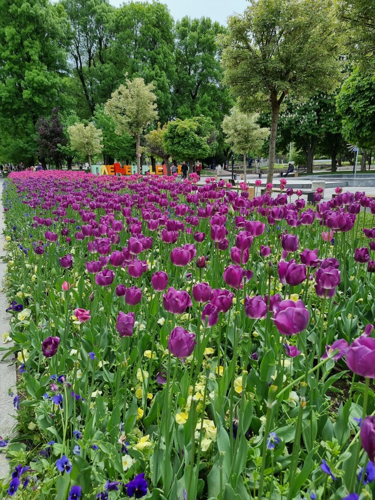 След поучителната ни разходка из този наш архитектурен шедьовър, решихме, че искаме да се поразходим из центъра на града. Благодарение на приложението Moovit, успяхме да намерим транспорт до центъра и обратно до кемперите, тъй като панорамата се пада на един хълм и си има качване. Слязохме до центъра и се наслаждавахме на градинките там. Беше много подредено, лалетата цъфнали, чисто, заредихме се със закуски, пихме кафе, децата поиграха. Направо идилия като за краткия ни престой там.