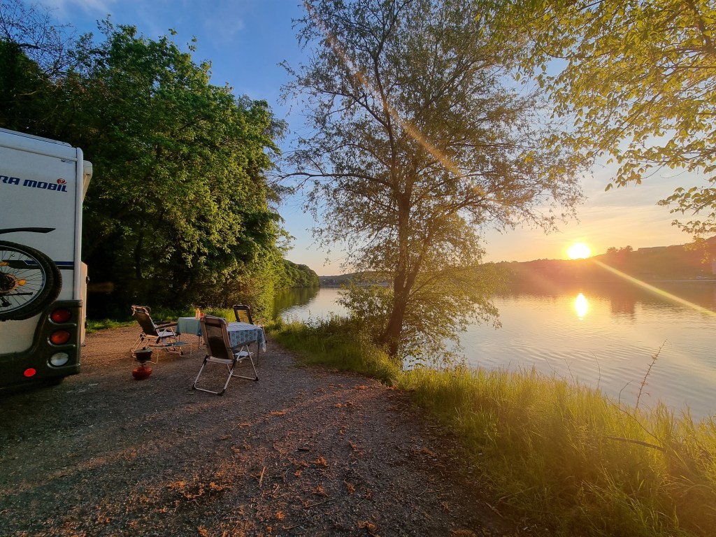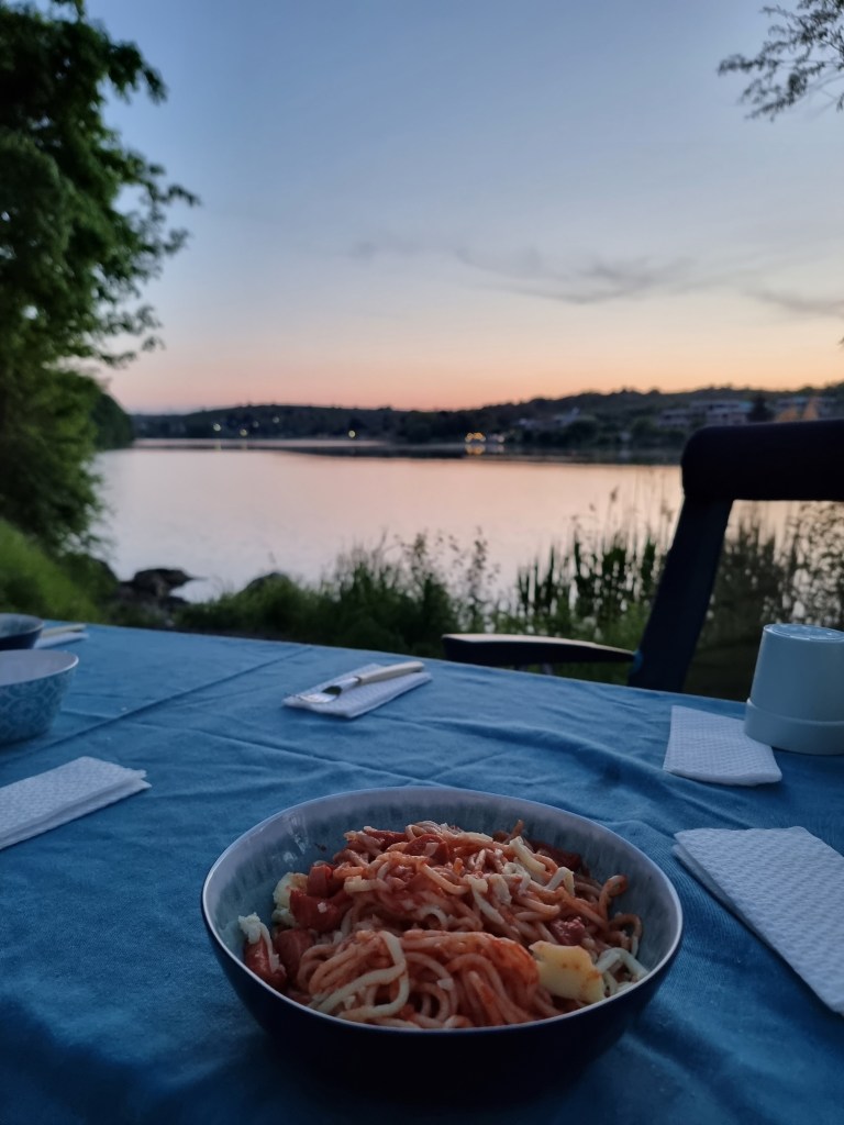 Дългата разходка из пещерите ни остави доста уморени и решихме да се прибираме към Белоградчик. Park4night ми помогна да намеря място в южното подножие на града, където решихме да останем и пренощуваме. Позиционирахме се в една горичка до река, която беше поизсъхнала, но пък имаше чешма наблизо, от която ако се наложи, можеше да напълним 10 литра вода, макар и да отнемат цяла вечност. Събрахме дърва за лагерния огън и докато се усетим, едни чехи с 2 по-големи деца и кемпер-бус се появиха от нищото. Направиха ни изключително добро впечатление колко са самостоятелни децата и как сами излязоха, подредиха масите и столовете, помогнаха на баща им с всичко. Бяха доста учтиви като споделиха, че планират разходка из Северна България и след това продължават за Турция и Гърция. Помогнах с каквото мога като съвет и забележителности по пътя и ги оставих да се насладят на местността.