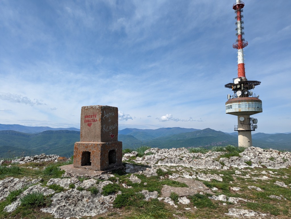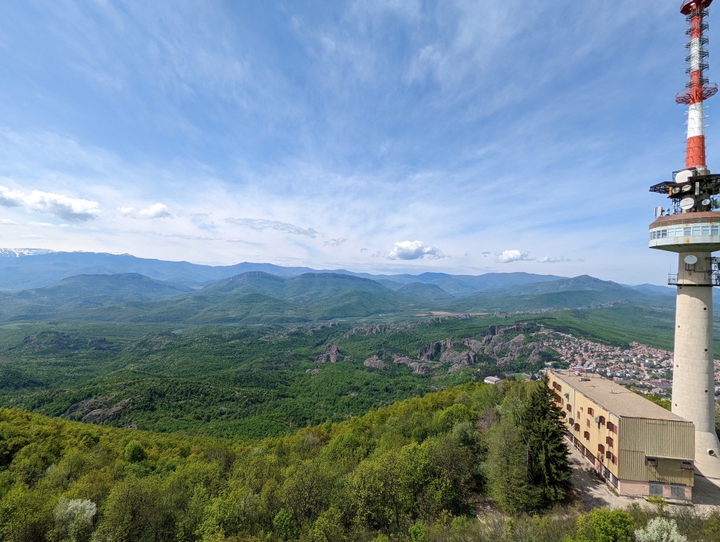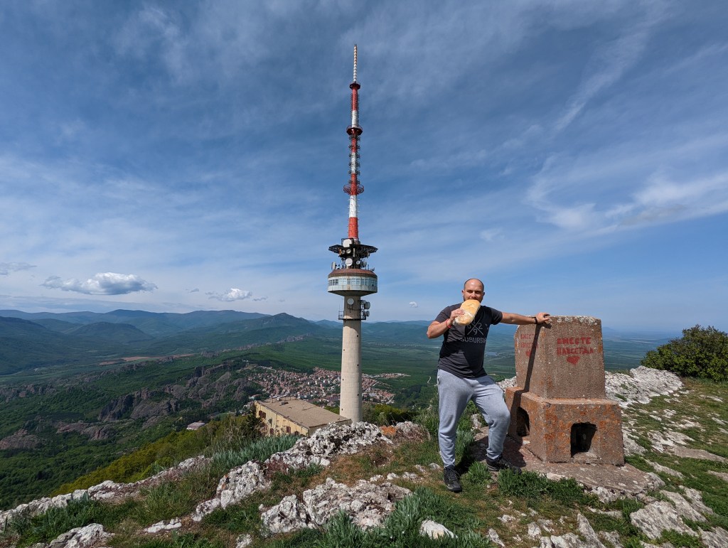 Някой решил на разходка с балон да отиде. хаха Както и да е, достатъчно стрес за утрото. Тъй като пътувахме с колелата през цялото време, беше редно и да направим разходка с тях. Видях телевизионната кула на картата над Белоградчик и решихме да се разходим до там с жена ми. Имаше си изкачване, което беше достатъчно да ни поумори приятно, а гледките отгоре отново ни възнаградиха. По пътя си взехме закуски, които хапнахме на върха над кулата.