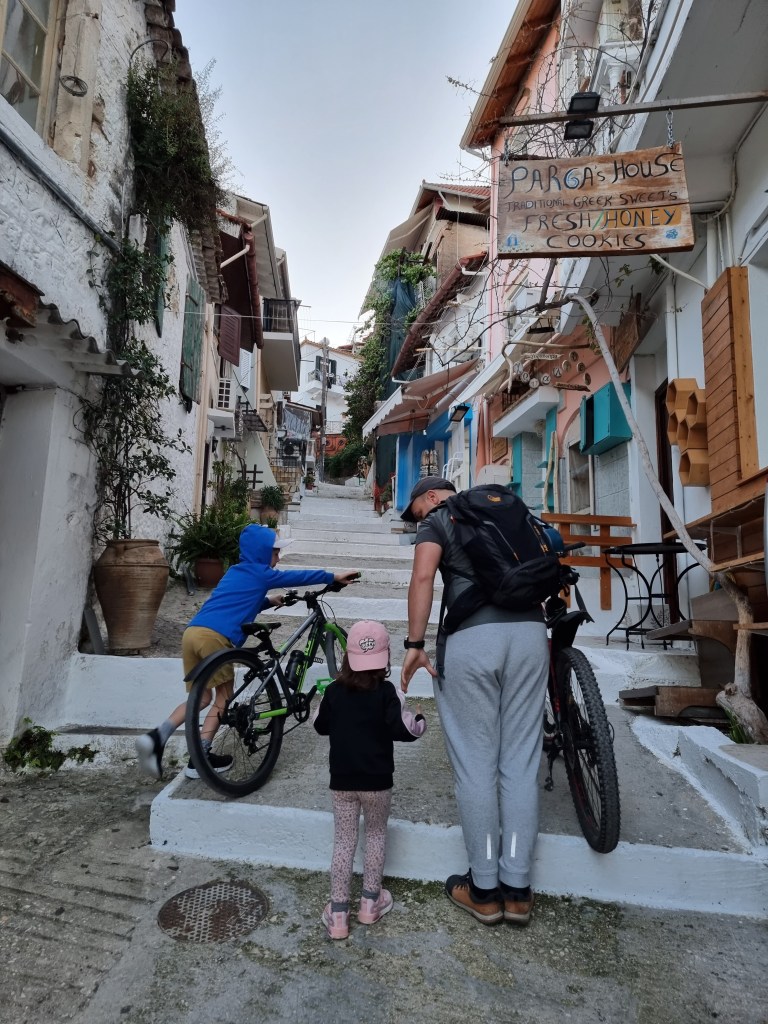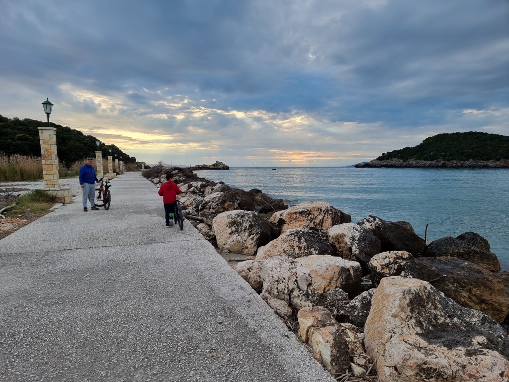 Отделно от горепосоченото, става за разходка с колела, защото е напълно равно. Поразходихме се набързо и извадих масата да правим пържолите навън. Никой от 3-мата гърци населяващи селцето по това време нямаше против, та си похапнахме нормално и по нашенски. Разходката по кея ни дари с вдъхновение и спокойствие. От мястото, където останахме да спим се чуваше шумът на вълните, който ни разказваше песента си за лека нощ.