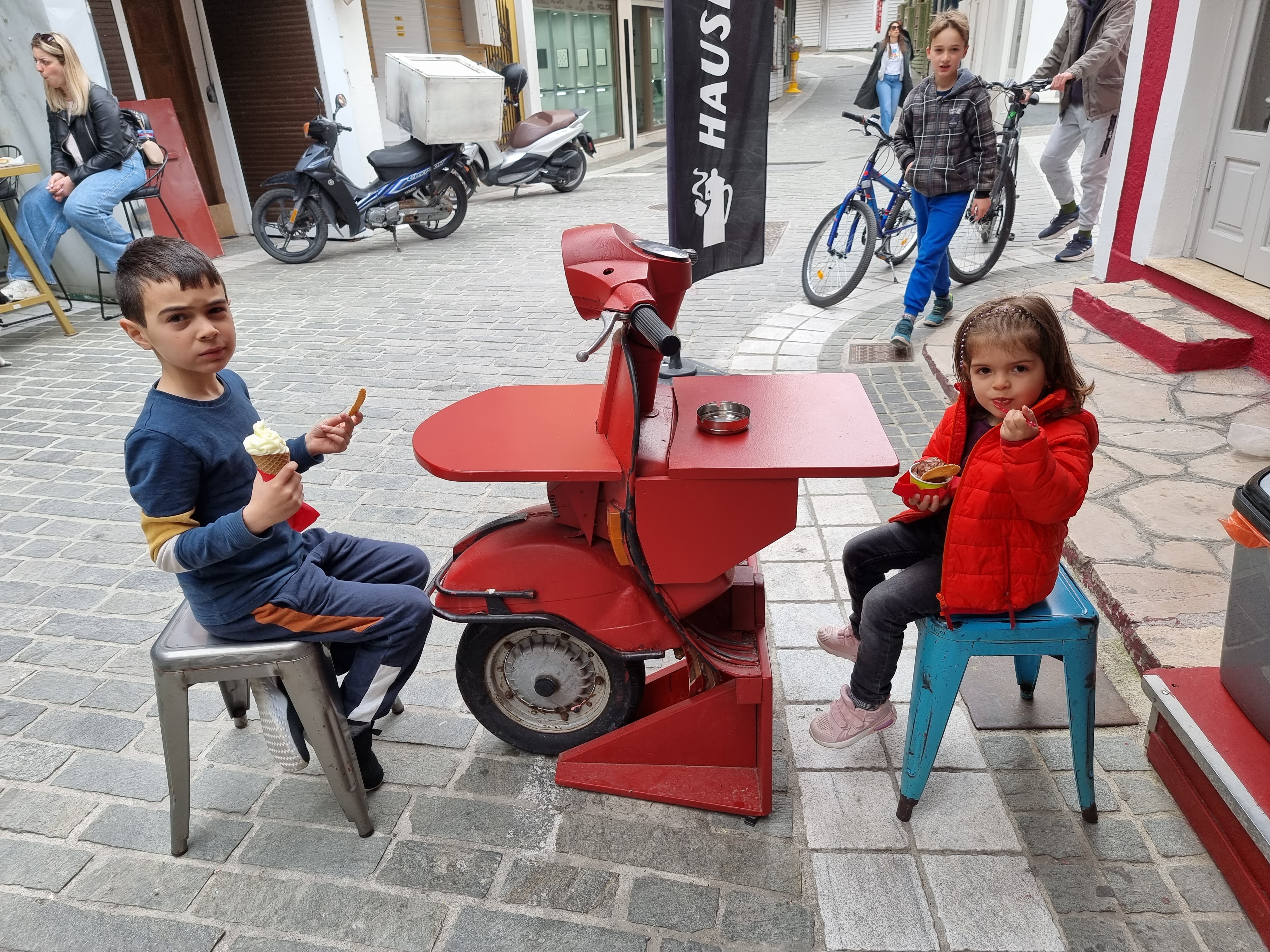 Времето за чакане запълнихме с кафе на главната, сладолед в близката сладкарница, гироси, игри в една голяма игрална зала и разходки и почивка. Обядът и вечерята ги направихме в градчето като деня го изкарахме без готвене. С малката на 2 пъти играхме една игра, в която целим едни риби с оръдия с вода и беше голяма радост. Големия се пусна на виртуална реалност, а оставихме Цвети да има време за шопинг. В общи линии, всекиму развлечението. Но пък Превеза ни хареса доста като за дестинация, в която временно да се върнеш към цивилизацията.
