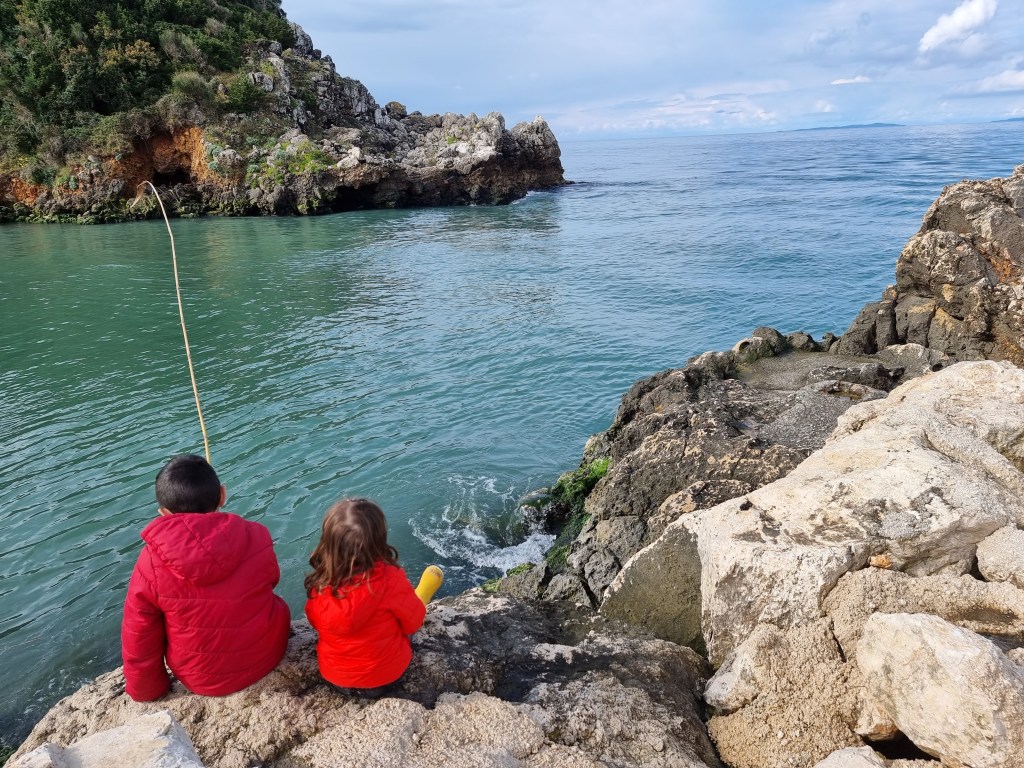 Ние си харесахме място за паркиране ето тук. Понеже бяхме извън сезон, лесно стигнахме до мястото, около което цареше пълна „умирачка“ или иначе казано можеше спокойно да се паркираме без да се притесняваме, че ще стане нещо. Тук-таме минаваха хора, достатъчно да сме спокойни, че ако някой тръгне да краде, ще има някой друг да каже – Дръжте крадеца. Намирахме се на метри от плажа и красивия небесно-син залив, който си просеше кафето всяка сутрин. Децата доволно се овъргаляха в пясък още първия един час и се погрижиха да забравим образа на природата и да се съсредоточим върху двете малки маймуноподобни, които възпитаваме 24/7.