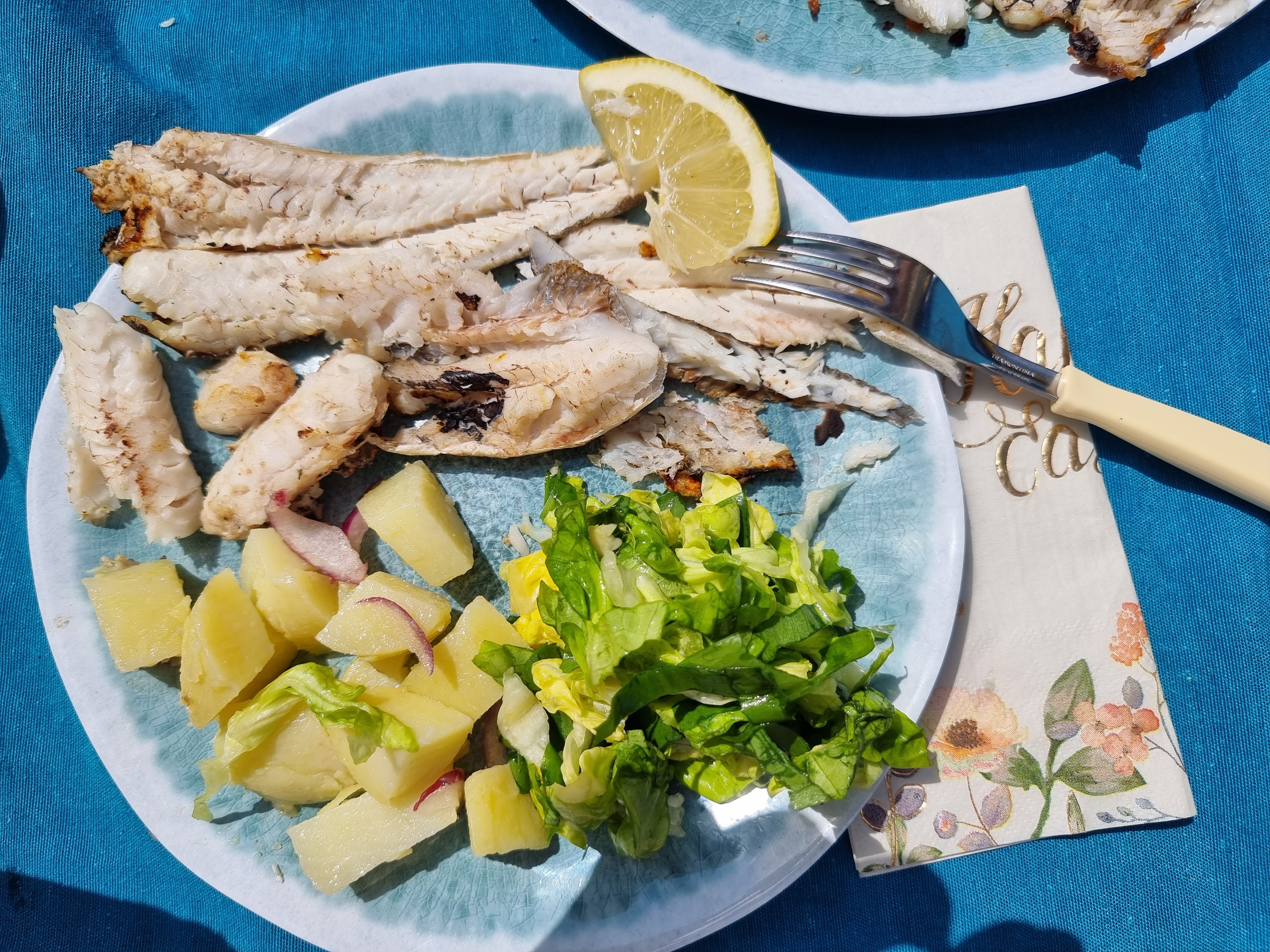 Тъкмо както пълнехме вода, изчистихме и рибата и вече бяхме готови да продължим за Алонаки, като някои от нас бяха доста щастливи. Минахме със скромните 20 евро, което беше сравнително добра цена за рибата, която получихме. На плажа бяхме след не повече от 10 минути каране.
