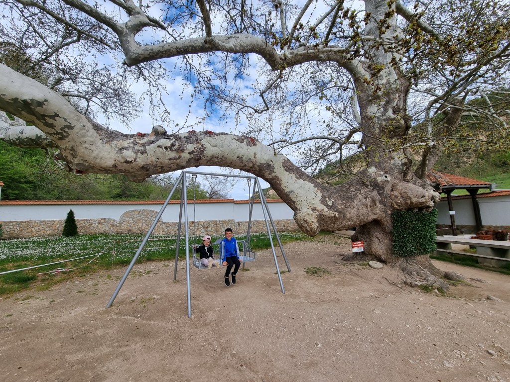 От Вероя тръгнахме за Роженския манастир, където по-рано бяхме видяли други хора от фейсбук групата Live Free BG, че ще бъдат там. Така решихме да минем и да се запознаем с нови родители и деца. Пътят е сравнително ясен. Скучен и спокоен, не сме имали проблеми като цяло, а и на границата минахме за по-малко от 25 минути. Бях позабравил баира преди Роженския манастир колко е стръмен и колко са обратни завоите, което в тази ситуация беше плюс, защото бих се замислил дали искам да го качвам с кемпера. А сега просто нямах избор.
