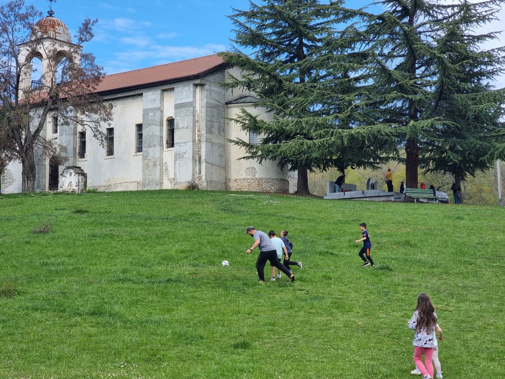 Запознахме се с доста хора на място – Жоро и Диди, Венци и Ива и още куп малчугани и родители, които също бяха дошли да обикалят манастира вечерта. Поздрави на всички вас ако четете тази статия! Изкарахме си прекрасно на манастира – направихме скара, цяла вечер игри с децата, истории за пътешествия и преживявания. Денят също беше изпълнен с активност като футбол и каране на колела до село Златолист и църквата на Преподобна Стойна.