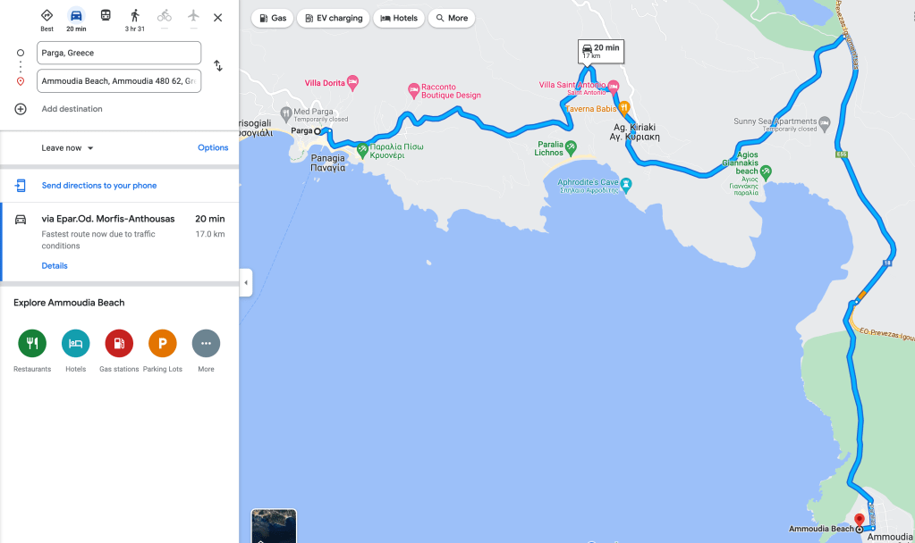 Пихме кафета, ядохме сладоледи и беше време за мечтаното спокойствие сред природата. Видяхме наблизо плаж (на около 15 минути каране с кемпера) и решихме да отидем да нощуваме там, колкото и жена ми да искаше да останем повече в тази Парга. За съжаление съм сигурен, че лятото в Парга няма да можем да си хванем място с кола, камо ли с кемпер, но пък кой знае, може да видите скоро нов пост от там.
