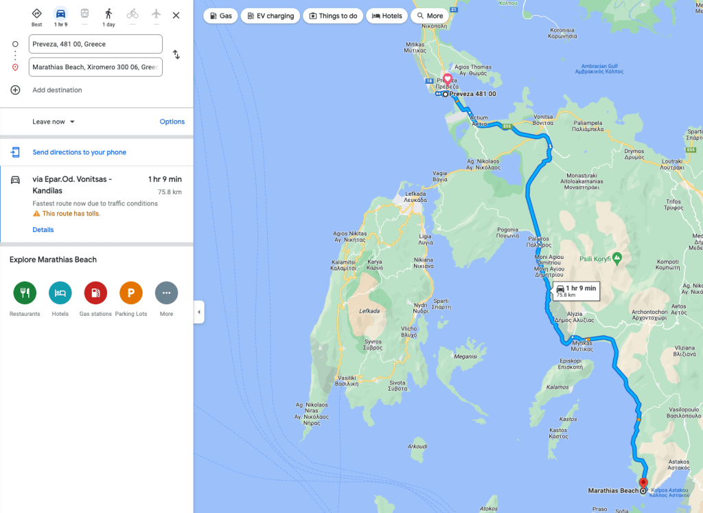 Дрехите ги взехме с час по-рано, докато се канехме да вечеряме. Някои от тях бяха много леко влажни, но като цяло останахме доволни. Идеята обаче беше да не спим за втора вечер в Превеза, а да тръгнем още повече на юг и да се върнем отново сред природата.