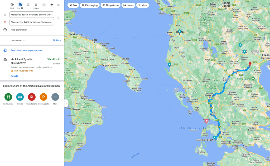 - плаж Маратиас – Гревена (Lidl) пазаруване – Вероя – нощувка на езерото Халиакмон