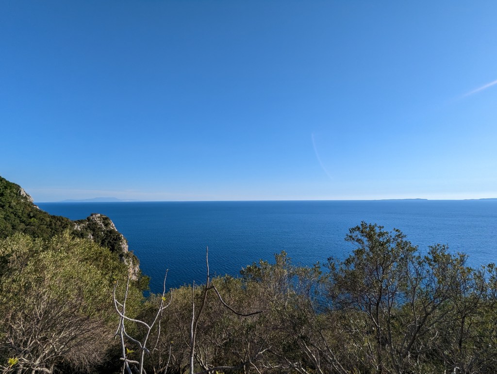 Имах намерение да спим някъде по-наблизо без да караме много. Но пък крайбрежието на Гърция е толкова пленително, пътят беше хубав и без завои, често слизахме на нивото на морето и имах чувството, че пръските на вълните разбиващи се в каменистото крайбрежие, ще се озоват на предното ни стъкло. Карането ми отпусна душата и реших да покараме до едно от местата, които бяхме набелязали, а именно плаж Маратиас. Най-много ми допадна идеята, че достъпът е лесен и изглеждаше доста закътано и спокойно. По пътя решихме да опитаме да спрем и на този закътан плаж тук, няколко километра преди Маратиас, но вече беше тъмно и обиколката с фенера показа, че нямаме никакъв шанс да достъпим плажа с голям кемпер. По-вероятно беше да слезем и да не се върнем след това тъй като наклонът беше доста сериозен.