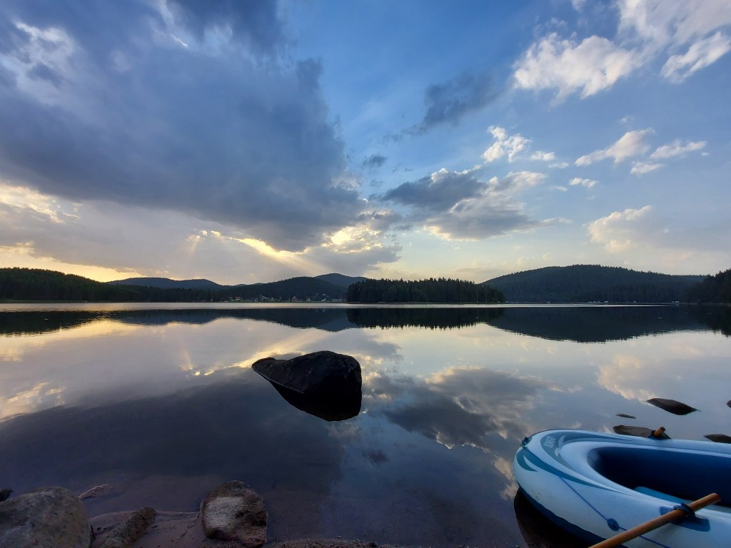 Посещаваме язовир Широка поляна за втори път в рамките на три години. Прекарваме там поне седмица, преди да тръгнем обратно към шумотевицата на града. Обичаме мястото – тишина и спокойствие носени от огромното количество вода сред гората, невероятно красиви ръкави, сред които е удоволствие да се разхождаш с лодка. Истинска насита на всички сетива е това прекрасно място. Има и доста неща, които можете да правите семейно:
