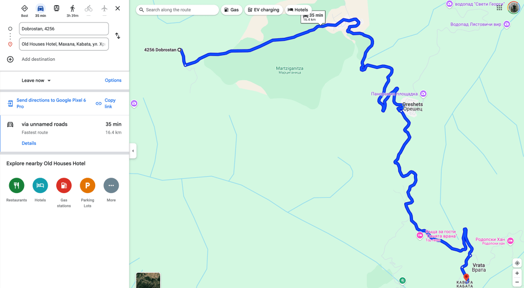 Въпреки че бяхме толкова близо, оставаха ни още поне 50-тина минути до село Врата, тъй като пътят се виеше като змия и тесните участъци не позволяваха бързо шофиране. Но привечер пристигнахме в комплекса, където щяхме да останем в следващите 3 нощувки.