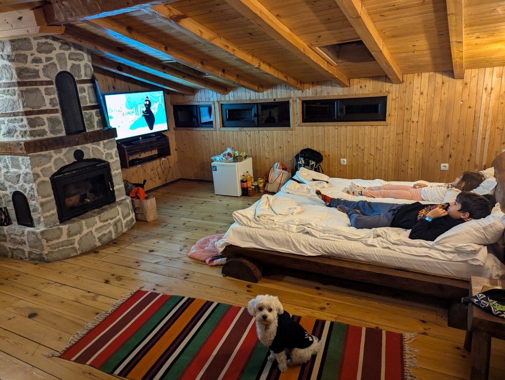 Нашата стая беше с камина и децата се спукваха да събират дърва и 2 вечери подред спаха на запалена камина, нещо, което почти няма как да се случи, в който и да е апартамент. Храната беше много вкусна и макар да имахме ограничен избор от ястия, всичко беше на доста високо ниво и за момент никой не се оплака от нещо. Истината е, че ревютата в Гугъл доста залъгваха и нямаха общо с реалността. Изкарахме си прекрасно, децата имаха 2 батута навън и достатъчно поляни, за да играят, а и често след разходките нямаха много сили за нищо друго.