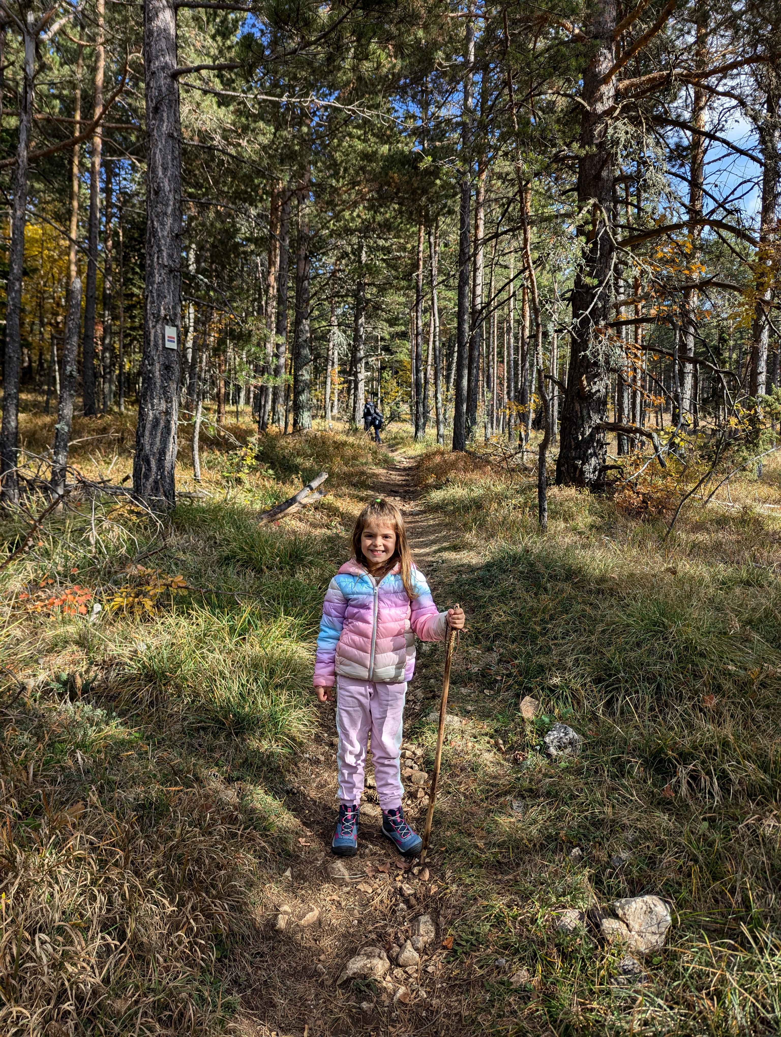 Самата пътека започва с едно постепенно и плавно изкачване, което трае около 100-150 метра денивелация. За децата не беше никакъв зор и честно казано доста лесно издрапаха всичко до върха. Събирахме шишарки, листа, къде останали шипки и неусетно стигнахме върха. По пътя дори забелязахме, че има джипове, които се връщаха явно от върха, така че дори за най-мързеливите има начин да го стигнат. Червената стена е резерват и ловджии няма или ако има, знаете телефона за сигнали, така че бъдете спокойни, че няма какво да се случи.