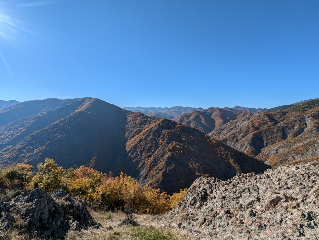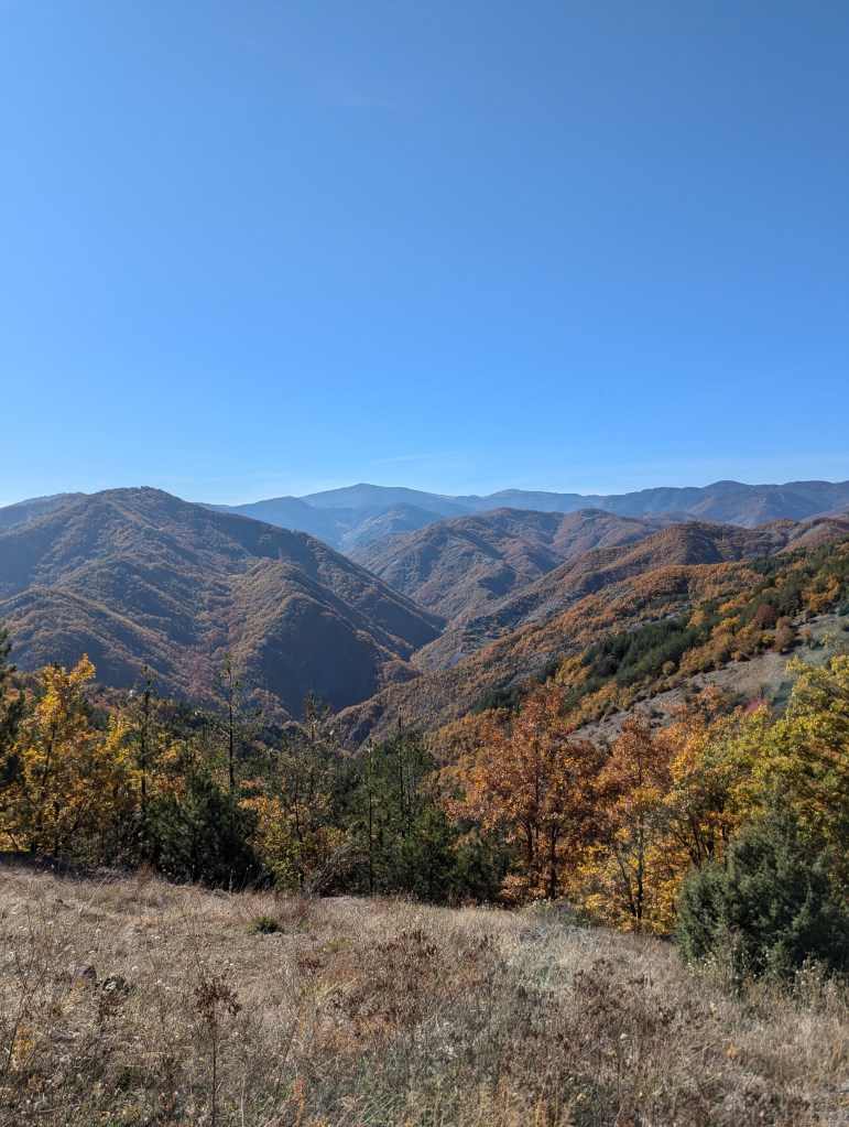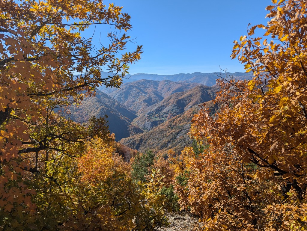 Сякаш бяхме вече на ръба на есента, точно преди последният есенен вятър да обрули листата на дърветата и да ги оголи за предстоящата зимна картинка. На места се срещаше още жълто, но пейзажът го правеше трудно забележимо след морето от оранжеви багри.