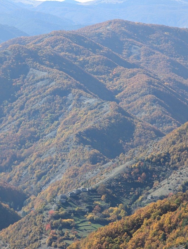 Не след дълго бяхме до самите къщи, които се виждат на снимките. До тях склонът разкриваше отново прекрасни гледки, а макар да изглеждаше опасно първоначално, отвесът не беше толкова сериозен и позволяваше да се приближиш и насладиш на всичко заобикалящо те наоколо. Изкарахме късмет и с времето, тъй като краят на октомври беше слънчев и макар лекият ветрец да довеждаше студ на сянка, на слънце си беше много приятно и се прибрахме изгорели.