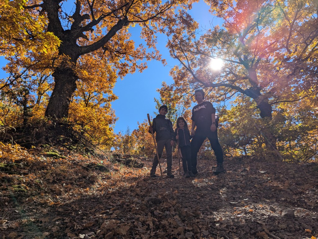 Прибирането обратно си ни отне пак около час и половина с цялото мотане, почивки, хапване и пийване на чай. Слънцето се скриваше и след като качихме дългия баир от Мумджидам до билото насреща, навръщане към селото бяхме на сянка и трябваше да обличаме якетата. Неусетно стигнахме колата, а героите вече бяха много уморени. За моя радост обаче и двамата се справиха без проблеми и почти не трябваше да нося малката с изключение на последните 200-300 метра.