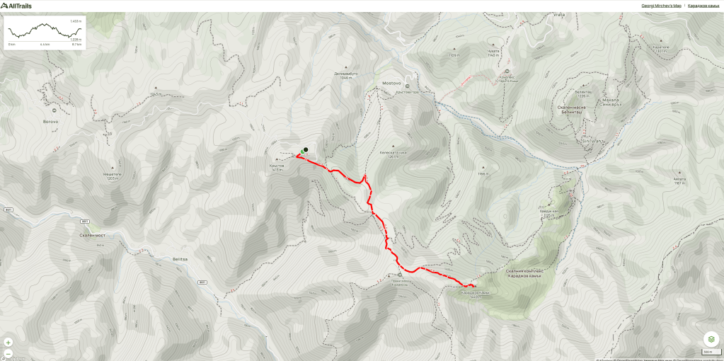 След разходката ни до Червената скала и махала Мумджидам, решихме да затворим кръга и за рождения ми ден да посетим Караджов камък като хванем пътеката от Кръстова гора. По принцип е възможен и кръгов преход, който започва от село Мостово, минава през Кръстова гора, Караджов камък, Белинташ и обратно на Мостово, но за целта си трябва един пълен ден в ходене, с който ние не разполагахме и затова решихме да хванем по-краткия маршрут.
