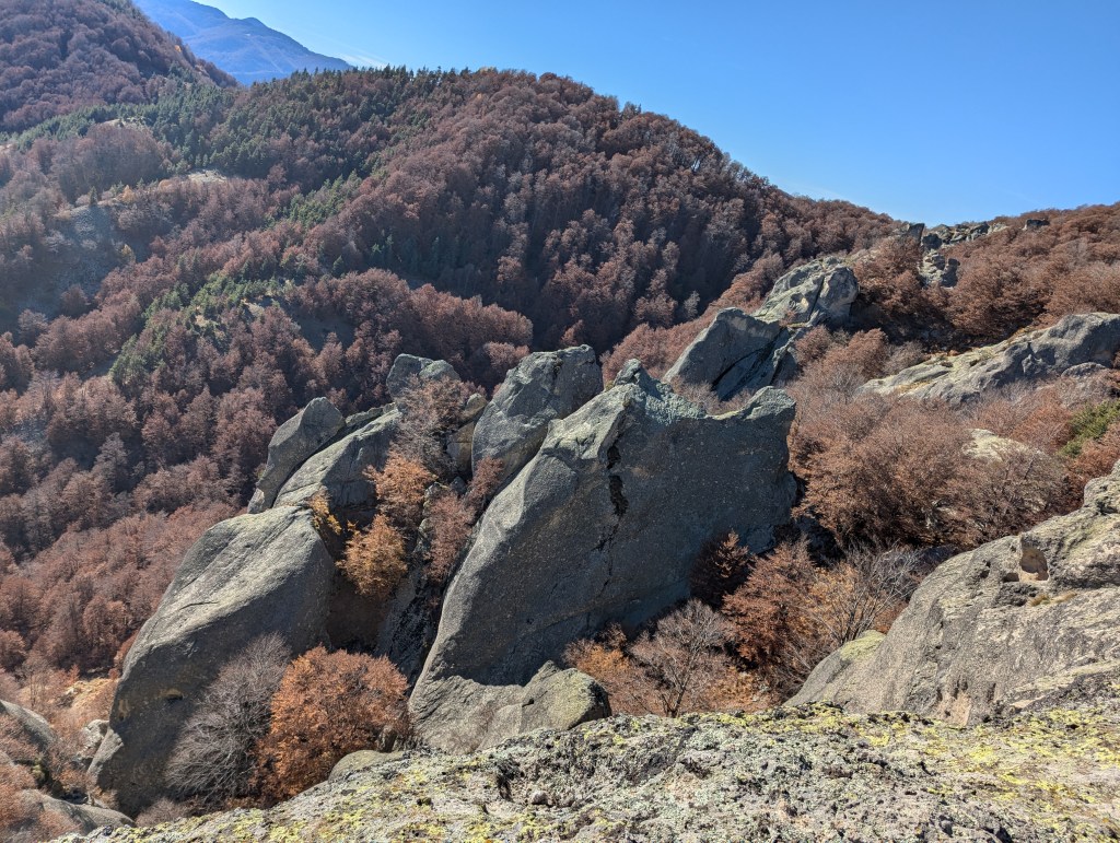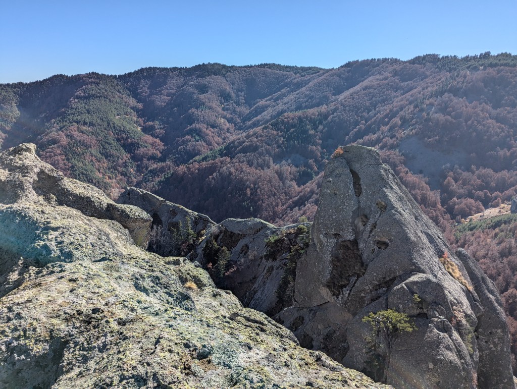 Есента си беше отишла, макар и само седмица по-късно след посещението ни на Мумджидам. Дърветата бяха голи, но това не пречеше на Родопа да напомня с необятната си шир, че тя винаги ще е тук, докато ние сме просто едни прашинки във вятъра на времето. Скалистият надупчен рид, който стига до Караджов камък пък оставяше усещането, че траките и тук са оставили своето послание към бъдещите посетители.