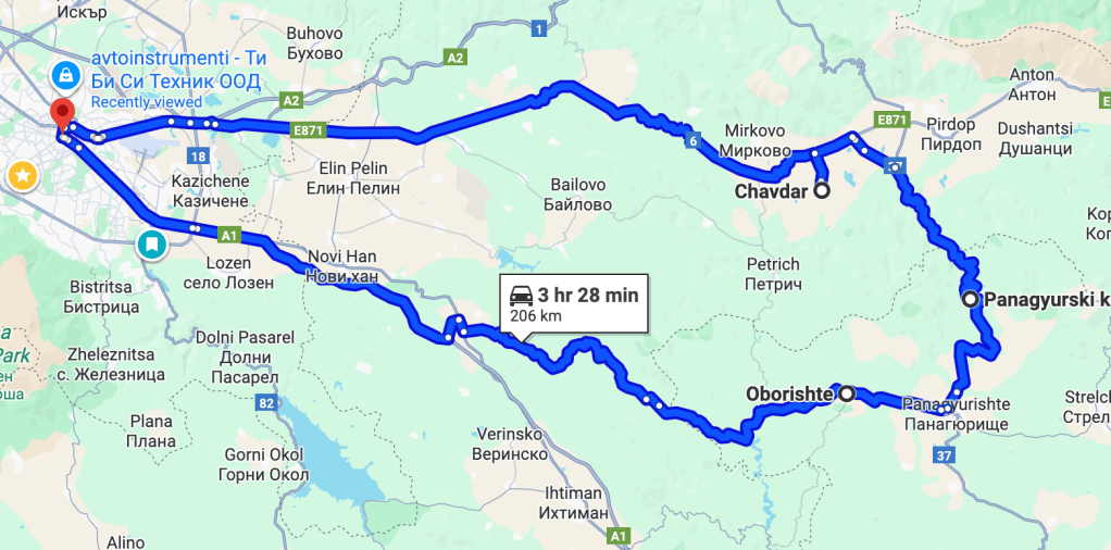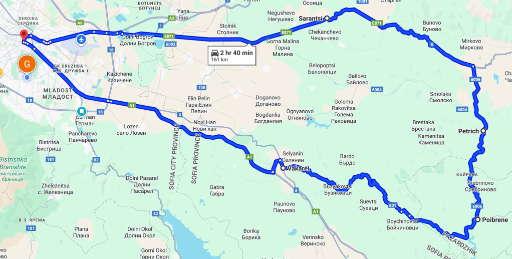 София – Подбалканския път – Бенковски – Петрич – Поибрене – Вакарел – София