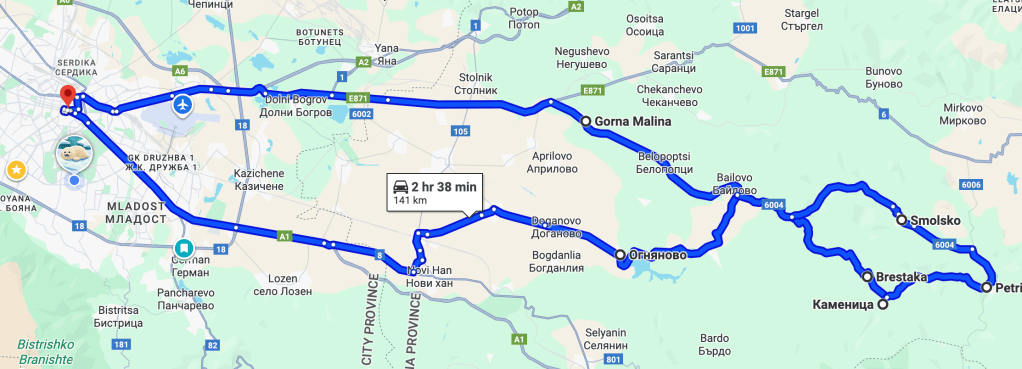 София – Огняново – Брестака – Каменица – Петрич – Смолско – Горна Малина – София