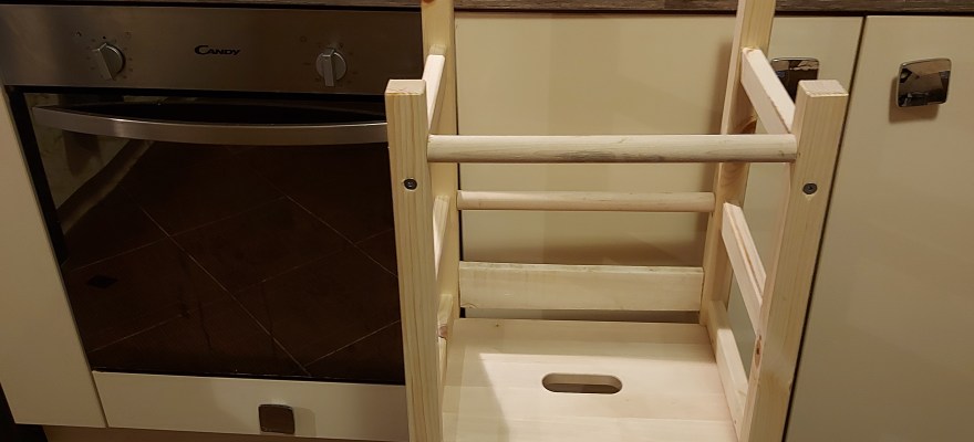 Една простичка идея, която взехме от интернет и реализирахме в рамките на час и половина. Идеята е да имаме бебешка кула, на която малката може да стои и да достига до кухненския плот (просто ѝ е много интересно и е доста по-удобно вместо да я носим на ръце).